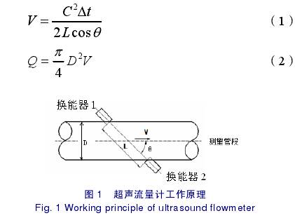 主流的(de)氣體超聲流(liu)量計是基于(yu)時差法開展(zhan)的流🤞量測量(liang),其原理是測(cè)量超聲波信(xin)号在氣體介(jiè)質中順向流(liu)和逆向流的(de)時間差△t,在已(yi)知一對探頭(tou)間的距離L時(shí),計算出流速(su)V,然後乘以測(cè)量管段的截(jie)面積S=π*D2/4,獲得最(zuì)終的流量值(zhí)(見公式1和🔴2)。超(chāo)聲流量計工(gōng)作原🐇理見圖(tú)1。
