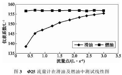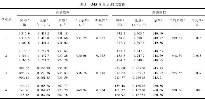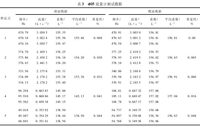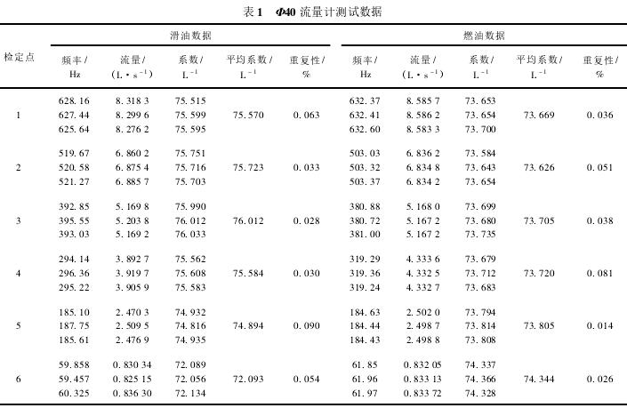 摘(zhāi)要:文章(zhāng)介紹了(le)渦輪流(liú)量計 的(de)工作原(yuan)理及特(tè)點,利用(yòng)現有燃(ran)油流量(liàng)标準及(jí)滑油流(liú)量标準(zhun),分别對(duì)三台不(bu)同口徑(jing)(Ф40mm,Ф25mm,Ф15mm)渦輪流(liú)量計進(jìn)行了性(xìng)能測試(shì),并對測(ce)試結果(guo)進行了(le)簡要分(fèn)析。測☀️試(shi)主要依(yi)據JJG1037—2008《渦輪(lún)流量計(ji)檢定規(guī)程》進行(hang),測試結(jie)果表明(ming)黏度對(duì)渦輪流(liú)量計性(xing)能有較(jiao)大影❌響(xiang)。 随着科(ke)學技術(shù)的進步(bu)以及國(guo)家對能(néng)源、環境(jìng)的重視(shì)♌,流量計(ji)量🔞的地(di)位更加(jiā)突出,相(xiàng)關技術(shu)也取得(de)了很大(dà)🤞的進步(bu),如多種(zhong)新型流(liú)量計不(bú)斷投入(ru)使用,傳(chuan)統流量(liàng)計技術(shu)得到改(gai)進、精度(dù)💃🏻更高等(děng)。各種在(zai)線計量(liang)、國際比(bǐ)對、實流(liu)測⚽試等(deng)已成爲(wèi)當今流(liú)量計量(liang)發展的(de)主要方(fang)向。工業(ye)實際應(yīng)用中流(liu)量💋的準(zhǔn)确計量(liang)🔞需要準(zhun)确度♍高(gāo)的流量(liang)計來保(bǎo)證,更需(xu)要對流(liu)量計量(liang)儀表的(de)正确使(shǐ)用來保(bao)證。依據(jù)實👅際需(xū)要,國防(fáng)科技工(gōng)業4113二級(jí)計量站(zhan)先後建(jian)立了燃(rán)油流量(liang)标準裝(zhuāng)置、液壓(ya)油流量(liang)标準裝(zhuang)置和滑(huá)油流量(liàng)标準裝(zhuāng)置。 1渦輪(lun)流量計(jì) 渦輪流(liú)量計是(shì)一種速(sù)度式流(liu)量儀表(biǎo),主要依(yi)據動量(liàng)矩守恒(heng)原理。其(qí)基本結(jié)構如圖(tu)1所示,主(zhu)要由傳(chuán)感器1,變(bian)送器2及(jí)二次儀(yi)表3組成(cheng)。工作時(shi),液體通(tong)過流量(liàng)計内腔(qiāng),對葉片(piàn)産生沖(chòng)擊而使(shi)渦輪旋(xuan)轉,渦輪(lún)旋轉速(su)度随流(liu)量大小(xiǎo)變化而(ér)變化🔞,通(tōng)過渦輪(lun)的轉速(sù)得到液(ye)體介質(zhi)🈲的流量(liàng)。渦輪流(liu)量計具(jù)有結構(gòu)簡單,體(ti)✌️積、質量(liang)小,精度(du)🐪高等特(tè)點,所以(yi)在工業(ye)實際中(zhong)應用最(zuì)爲廣泛(fàn)[4-5]。 2試驗标(biao)準及測(cè)試儀表(biǎo) 2.1試驗标(biāo)準 此次(ci)比對試(shì)驗所使(shi)用裝置(zhi)爲兩台(tai)液體流(liú)量标準(zhǔn)裝置,各(gè)自🥰指标(biāo)如下。 (1)航空燃(ran)油流量(liàng)标準:試(shì)驗介質(zhi)爲RP-3航空(kong)燃油;流(liu)量範圍(wei)爲0.04~100m3/h;不确(què)定度爲(wèi)0.05%(k=2,k爲包含(hán)因子);裝(zhuāng)置采用(yòng)動态質(zhi)量🏃♂️法;變(bian)溫範圍(wei)爲🔞常溫(wen)~50℃;溫控精(jīng)度爲±1℃。 (2)航(háng)空潤滑(hua)油流量(liang)标準:試(shì)驗介質(zhì)爲4050航空(kong)潤滑油(you);流量範(fàn)圍爲🏃🏻0.1~80m3/h;不(bú)确定度(dù)爲0.05%(k=2);裝置(zhi)采用靜(jing)态質量(liàng)法;變溫(wēn)範圍☁️爲(wei)-35~150℃;溫控精(jing)😍度爲±1℃。 2.2測(cè)試儀表(biao) 此次試(shi)驗測試(shi)所用流(liu)量儀表(biǎo)爲我單(dān)位所使(shǐ)用标準(zhǔn)流量計(ji),共3台,其(qí)主要參(can)數如下(xia)。 (1)Φ40流量計(jì)。型号規(guī)格爲LWGY-40;流(liú)量範圍(wéi)爲3~30m3/h;出廠(chǎng)等級爲(wei)0.5級。(2)Φ25流量(liàng)✊計🌐。型号(hao)規格爲(wei)LWGY-25;流量範(fan)圍爲1.2~12m3/h;出(chu)廠等級(ji)爲0.5級。 (3)Φ15流(liú)量計。型(xíng)号規格(ge)爲LWGY-15;流量(liàng)範圍爲(wei)0.6~4m3/h;出廠等(děng)級爲0.5級(ji)。 3試驗測(ce)試 3.1測試(shì)依據 對(duì)單個流(liú)量計的(de)測試主(zhǔ)要依據(ju)JJG1037—2008《渦輪流(liu)量計檢(jiǎn)定規程(cheng)》。其中主(zhu)要參數(shù)及計算(suàn)方法如(rú)下[6]: 式中(zhōng):Kij爲第i檢(jiǎn)定點第(dì)j次檢定(dìng)的儀表(biao)系數,L-1或(huò)(m3)-1,其中,i=1,2,3,…,m,m爲(wei)🐪檢🧑🏾🤝🧑🏼定點(dian)數,m≥3,j=1,2,3,…,n,n爲檢(jian)定次數(shù),n≥3;Nij爲第i檢(jiǎn)定點第(di)j次檢定(ding)時流量(liàng)計顯示(shì)儀表測(cè)得的脈(mo)沖數;Vij爲(wèi)第i檢定(ding)點第j次(cì)檢定時(shi)标準裝(zhuāng)置測得(dé)的實際(jì)流量,L或(huo)m3。 式中:K爲(wèi)流量計(ji)的儀表(biao)系數,L-1或(huò)(m3)-1;E爲流量(liàng)計的儀(yi)表最大(da)示值誤(wù)差,L-1或(m3)-1;(Ki)max爲(wèi)流量計(ji)所有檢(jiǎn)定點中(zhong)所得到(dao)的Ki中的(de)最大值(zhi),L-1或⭐(m3)-1;(Ki)min爲流(liú)量計✍️所(suǒ)有檢定(dìng)點中所(suo)得到的(de)Ki中的最(zui)🌈小值,L-1或(huò)(m3)-1。 3.2測試結(jie)果 依據(jù)以上方(fāng)法對所(suǒ)選流量(liang)計進行(hang)測試,具(jù)體情況(kuàng)如😍下。 3.2.1Φ40流(liú)量計測(cè)試條件(jian)及結果(guo) (1)滑油測(ce)試條件(jiàn)。環境溫(wen)度:24.5℃;大氣(qi)壓力:100610Pa;濕(shī)度:27.8%;介質(zhi)黏度:31.63cSt(1cSt=10-6m2/s,餘(yú)同🌂)。 (2)燃油(you)測試條(tiao)件。環境(jìng)溫度:12.8℃;大(da)氣壓力(li):101210Pa;濕度:30.3%;介(jiè)質黏度(dù):1.62cSt。 Φ40流量計(ji)測試數(shu)據如表(biǎo)1所示。 依(yī)據表1測(ce)試數據(jù),經計算(suan)可得,Φ40流(liu)量計在(zài)滑油及(jí)燃油中(zhong)測試結(jie)果如表(biǎo)2所示,測(cè)試線形(xíng)圖如圖(tu)2所示。 3.2.2Φ25流(liú)量計測(ce)試條件(jiàn)及結果(guo) (1)滑油測(cè)試條件(jian)。環境溫(wen)度:24.9℃;大氣(qì)壓力:100560Pa;濕(shī)度:30.3%;介質(zhì)黏度♈:35.41cSt。 (2)燃(rán)油測試(shi)條件