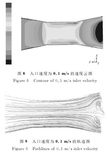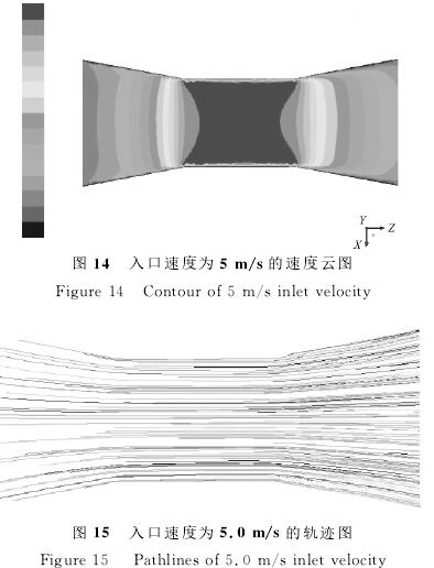 【摘要】通過ICEMCFD軟(ruǎn)件将局部截(jie)面變爲橢圓(yuán)形的異徑導(dao)☁️流筒進🏃🏻♂️行了(le)三維建模,使(shi)用Fluent對不同入(rù)口速度下的(de)流線場與🌈速(su)度分布進行(hang)✏️仿真計算,建(jiàn)立了不同結(jié)✉️構的導流筒(tong)所适用的速(sù)度範圍.結果(guǒ)表明,速度的(de)大小和橢圓(yuán)截面離心率(lü)對流場産生(shēng)的影響較大(da)🔞.當速度減小(xiǎo)或離心率變(bian)🏃🏻♂️大時,導流筒(tǒng)尾部漸擴管(guǎn)💘容易發生回(hui)🏃🏻♂️流,緻使流場(chang)紊亂.本研究(jiū)能爲橢圓形(xing)管道電磁流(liu)量計💯的結構(gòu)設計提供參(cān)考方案,爲設(shè)計合理的導(dao)流筒提供理(li)論依據. 電磁(cí)流量計 是工(gong)業過程中用(yong)于計量導電(diàn)性流體體積(jī)流量的儀表(biǎo)[1],當前國内使(shi)用大多電磁(ci)流量計爲圓(yuan)形截面導流(liú)筒.然而,電磁(ci)流量計對被(bèi)測管道内的(de)流場有一定(dìng)的要求,流場(chang)的不穩定會(huì)👉使得流量計(jì)示值不穩定(ding),緻使🛀🏻測量誤(wu)差加大[2-3].爲了(le)解決這些問(wèn)題,本文提出(chu)橢圓形截面(mian)管道設計方(fāng)案. 針對橫截(jie)面爲不同離(lí)心率橢圓形(xing)的導流筒,對(dui)在不同👣入口(kǒu)速度下流場(chǎng)的流動性與(yu)速度分布進(jin)行Fluent仿真,欲爲(wèi)合理⭐的導流(liú)筒🌈提供理論(lun)依據. 1異徑管(guǎn)結構的電磁(ci)理論分析 電(diàn)磁流量計是(shì)基于法拉第(dì)電磁感應定(ding)律而開發的(de)🥰計量🔞儀表[8].通(tong)電後的勵磁(cí)線圈在導流(liú)筒垂直方位(wèi)産👅生磁感應(yīng)強度🛀🏻爲B的工(gōng)作磁場,待導(dǎo)電流體穿過(guò)時,在液體兩(liang)側産生✍️感應(ying)電動勢E,通🚶過(guò)對相應的電(dian)動勢進行信(xìn)号處理而實(shi)現體積流量(liang)的準确測量(liàng).感應電動勢(shi)大小爲 E=BVD.(1) 式(1)中(zhong):B爲工作磁場(chang)中的磁感應(yīng)強度;V爲導電(dian)液體流速;D爲(wèi)測量🔴導管内(nèi)徑. 導電流體(tǐ)的速度V與工(gong)作磁場内的(de)磁感應強度(dù)B都是有💃🏻方向(xiàng)性的矢量,但(dan)各質點的速(su)度爲非均勻(yun)分布,當流體(tǐ)的流速很小(xiao)時,會産生很(hen)小感應電動(dong)勢,與噪音混(hun)合後🤩使得測(ce)量誤差增大(da),從🌈而影響到(dào)設備的穩定(dìng)性和可靠性(xing).其中E的數值(zhi)由電極測量(liang),單位時間内(nèi)管道流量計(ji)算公式爲 在(zài)電磁流量計(jì)的勵磁線圈(quan)中,電流爲I,匝(zā)數爲N,穿過工(gong)作區🐆域☀️的磁(cí)路長度均值(zhi)爲L,可得磁阻(zǔ)Rm與磁通勢F爲(wèi) 式中S爲磁路(lù)的平均面積(jī),μ爲介質磁導(dao)率.由磁場歐(ou)姆定🚶♀️律[9]可得(de)磁通量f 由(6)式(shi)可知,磁感應(yīng)強度B與磁路(lù)長度平均值(zhí)L成反比,與🌈通(tong)過勵磁線圈(quan)的電流I成正(zheng)比.相比起均(jun1)勻的圓形管(guan)道,橢圓導流(liú)筒内的工作(zuo)磁場縮小了(le)L值,在産生同(tóng)等‼️磁感應強(qiang)度B的條件下(xià),勵磁線圈中(zhōng)的電流将小(xiǎo)于前🈲者,從而(er)可降低電磁(cí)流量計的功(gong)耗. 2Fluent模型建立(li)與參數設置(zhi) 使用ICEMCFD建立橢(tuǒ)圓截面導流(liu)筒的模型.導(dao)流筒的中間(jian)部㊙️分爲橢圓(yuán)😘管,兩側均爲(wei)橢圓形漸變(biàn)爲圓形的漸(jian)擴管.導流👈筒(tǒng)半長軸與X軸(zhóu)平行,長度35mm,半(ban)短軸與Y軸平(ping)行,長度28mm,短長(zhǎng)半軸之比爲(wèi)4/5,橢圓離心率(lü)爲0.60,長88mm.兩端漸(jiàn)擴管最外側(ce)圓形的半徑(jìng)爲50mm,各🍉長81mm.導流(liú)筒❄️總長250mm.該模(mo)㊙️型的對象爲(wei)在中間直管(guǎn)段具有均勻(yún)磁場分布的(de)🔆橢圓截面管(guǎn)道的電磁流(liu)量計将導流(liú)筒兩端分别(bié)定義爲出口(kǒu)與出口.流體(ti)在入口邊界(jie)以固定速度(du)🔞垂直與入口(kou)邊界流入,在(zài)出口邊界自(zi)由流出,忽略(lue)重力.定義其(qí)他區域爲壁(bì)面,最後以四(sì)面體結構對(dui)模型進行網(wǎng)格劃分,如圖(tú)1所示.單元格(ge)數量爲204萬,網(wǎng)格質量評價(jia)系數爲:0.65~0.70(2.5%);0.70~0.90(8.6%);0.90~1.0(86.2%).該三(sān)維模型網格(ge)質量能夠滿(mǎn)足精度和收(shōu)斂要求.文中(zhong)其它結構的(de)三維模型網(wǎng)💃格,其類型✊與(yǔ)上述一緻,網(wǎng)格質量❗基本(běn)相👨❤️👨同. 設置模型爲(wèi)k-epsilon湍流模型[10],模(mó)拟對象爲液(ye)體水,仿真将(jiang)以入口流速(sù)分别爲小流(liú)速0.1m/s、0.3m/s與大流速(su)5.0m/s的條件下進(jin)行. 3速度場仿(pang)真結果分析(xi) 以不同進口(kou)速度對該結(jie)構導流筒進(jin)行流場仿真(zhēn),求解❌後使♍用(yong)軟件提取數(shù)據.由于磁場(chǎng)方向平行于(yú)Y軸,故圖2至圖(tu)15是在選💰取了(le)與Y軸垂直的(de)XOZ坐标平面,并(bìng)觀察速度雲(yun)與流線分布(bu)圖,計算結果(guo)如下. 3.1小流速(su)下的仿真分(fen)析 取流入速(sù)度爲0.1m/s、0.3m/s,設置仿(pang)真計算的叠(die)代步數爲300,過(guo)程中💔分🐅别💞在(zai)第211步、第186步時(shí)計算結果收(shou)斂,流量計流(liú)道區域内可(kě)♊視爲📞穩态的(de)定常流動.管(guan)内速度雲圖(tu)如圖2、圖3,流線(xiàn)圖如🐕圖4、圖5. 由(you)圖2、圖3可知,在(zai)進口速度爲(wei)0.1m/s與0.3m/s條件下,速(sù)度雲圖無明(míng)顯差别🏃,平面(mian)直管