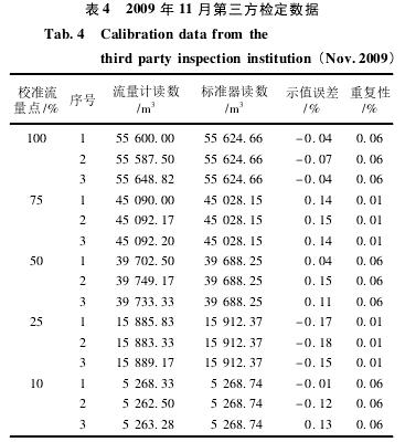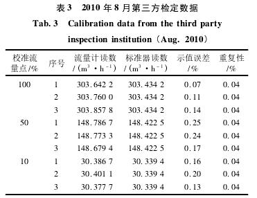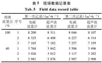 摘 要:爲更(geng)好地将電磁流(liú)量計在線檢定(dìng)方法運用于實(shí)際現👣場操作之(zhī)中,根據《計量法(fǎ)》和《 管道式電磁(cí)流量計 在線校(xiào)準要求》(以下簡(jian)稱《要求》),對不同(tong)工況下的十幾(jǐ)台大口徑💰電磁(ci)流量計進行現(xiàn)場檢測和校驗(yàn),所得數據與出(chu)廠标定的原始(shi)數據能夠很好(hao)地吻合。在對在(zai)🐅線檢測過程中(zhong)相關細節進行(hang)總結後,證實了(le)電磁流量計的(de)在線檢定是✔️切(qiē)實可行🔞和有效(xiào)的,能夠廣泛地(di)運用于大口徑(jìng)流量計的現場(chǎng)檢定。 0 引言 流量(liàng)是給排水和水(shui)處理等相關行(hang)業常用的過程(cheng)🧑🏾🤝🧑🏼控制和計量的(de)重要參數和生(shēng)産指标,它直接(jie)關系到水處理(li)的進程與👅質量(liang)。電磁流量計 由(you)于其結構簡單(dān),傳感器内沒有(yǒu)可動部件,沒有(you)節流裝✨置❓,不存(cun)在機械轉動和(he)磨損,不會産生(sheng)壓力損失,并因(yin)其精度高、線性(xìng)好🤟、運行穩定等(děng)優點,在給排水(shui)、污水處理、引水(shuǐ)工程🏃🏻♂️等項目中(zhong)得到廣泛的應(ying)用,用以進行内(nèi)部計量、過程控(kong)制和對外貿🐉易(yì)結算。電🚶磁流量(liang)計作爲一種普(pǔ)遍的計量器具(jù),按照《計量法💛》的(de)規定,必須在一(yi)定的周期内對(duì)該器具進行檢(jian)定或校準。同時(shi),使用方爲保證(zhèng)流量計使用的(de)可靠性,也對 電(dian)磁流量計生産(chan)廠家 提出了這(zhe)個要求。 然而,應(ying)用于水務行業(ye)中的電磁流量(liang)計口徑較大,安(ān)裝環境差等因(yin)素導緻流量計(jì)很難甚至不允(yun)許拆卸🚩之後♊送(song)到标定裝置中(zhōng)進行複核。另外(wài),由于此類流量(liang)計的現場工作(zuo)☎️條件與實驗室(shi)校驗設置條件(jian)存在偏☀️異,因此(cǐ),電磁流量計♈,尤(yóu)其是 大口徑電(diàn)磁流量 在使用(yong)一個階段之後(hòu),測量也許會存(cún)在一定的不确(que)定性偏差。在線(xiàn)大口徑流量計(ji)不停水的校準(zhǔn)和檢定問題亟(jí)待🏃🏻解決♍。 1 電磁流(liú)量計的在線檢(jiǎn)定方法 目前,普(pu)遍應用的電磁(ci)流量計在線檢(jian)定手段主要有(yǒu)标😍準表法和電(diàn)參數法。電參數(shù)法是根據管道(dào)式電磁流量⭐計(jì)的測量原理,對(duì)影響在線工作(zuò)的管道🐪式電磁(ci)流量計的相關(guān)參數進行檢定(ding)( 如勵磁線圈對(duì)地絕緣電阻、電(dian)極對地( 接液) 電(dian)阻、勵磁線圈電(diàn)阻和流量計電(diàn)纜線電阻) ,測量(liang)控制相關參數(shu)在一定允許的(de)變化範圍内與(yǔ)出廠檢👨❤️👨定的原(yuán)始數據進行💛比(bi)較溯源,使其保(bǎo)持在出廠時的(de)标準準确度以(yi)内,以🐅滿足使用(yòng)要求。标🚩準表法(fǎ)是以标準表爲(wei)标準器具,使流(liu)體在相同時間(jiān)間隔内💁,同時連(lian)續通過标準表(biao)和被校表,比較(jiào)兩者的輸出流(liu)量值的偏差,從(cong)而☎️确定被校流(liu)💯量計與标準表(biǎo)所示的流量值(zhi)的關系。 對于以(yi)上兩種方法孰(shu)優孰劣,不能斷(duàn)然判明,但根據(jù)以上兩種方法(fa)的在線檢定過(guò)程均能反映測(cè)量👨❤️👨性能。 2 電參數(shu)法 衆所周知,電(diàn)磁流量計是根(gēn)據法拉第電磁(ci)感應定律來測(ce)🈲量導電液體體(ti)積流量的儀表(biǎo)。法拉第電磁感(gan)應公式🔞如式(1) 所(suo)示: E=K×B×V×D (1) 式中: B 爲流量(liàng)計勵磁線圈感(gǎn)應磁場的強度(du);V爲被測✏️電✉️液導(dao)體❤️的💜流速;D爲管(guan)徑;K爲儀表系數(shu)。宏觀上把導電(diàn)液體看🌈成導體(tǐ)。 由式(1) 可知管徑(jìng)D與系數K都爲固(gù)定參數。在一定(ding)流速下,隻🤞要保(bao)證參數 B 的穩定(ding),那麽感應電動(dong) E也随之穩定,即(ji)在進行電參數(shu)法在線檢定時(shí),若參數B保持在(zài)出廠校準時的(de)允許範圍内時(shi),就可證明該流(liu)量計目前所測(cè)流量的精度仍(réng)與出🌈廠時保持(chi)一緻[3]。 影響電磁(ci)感應強度 B 的因(yin)素,就流量計本(běn)身而言,應檢驗(yàn)勵磁線圈電阻(zu)(扣除溫度變化(huà)引起的差值)、勵(li)☎️磁線圈的🆚絕緣(yuan)以及勵磁電流(liú)的幅值。另外,我(wǒ)們需♉檢查電極(ji)信号電路絕緣(yuan)性能是否良好(hǎo),證明原本微弱(ruo)的流量信号有(yǒu)沒有額外大的(de)損失; 測量電極(ji)的接液電阻🈲,評(ping)估電極表面是(shi)否被過度氧化(hua)、腐蝕、結垢或損(sun)傷而影響正常(cháng)測量; 檢查接地(di)電阻等情況并(bing)排除雜亂信号(hào)的幹擾。同時,使(shi)☔用精度佳的模(mó)拟信号器檢測(cè)轉換🥵器的工作(zuo)狀況。 2.1 電參數法(fǎ)的檢定過程 在(zài)檢定過程中,首(shǒu)先,觀察轉換器(qì)内的各項參數(shù)設置是否📞有👨❤️👨被(bei)改動過,要求轉(zhuan)換器的各項參(cān)數設置📐與電磁(ci)流🏃🏻♂️量計出廠銘(ming)牌‼️上的一緻; 然(ran)後觀察兩根電(dian)纜( 勵磁電纜、信(xìn)号電纜) 是否🈲有(yǒu)損傷,是否保持(chi)原樣。《管道式電(dian)磁流量計在線(xiàn)校準要求》指出(chu)需保證被測液(yè)體電導率符合(he)流速在 0.3 ~10 m/s 的流動(dòng)狀态下,被測📧管(guan)道中應保持滿(man)管,無氣泡聚🔅集(ji)。 在對該自來水(shuǐ)廠進行檢定觀(guan)察時,全部的流