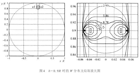 取b= 0.9R,θ= 0.0555rad,繪制W分布如(rú)圖4所示。