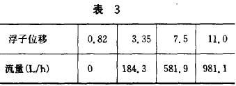 (3)平(píng)衡杆磁鋼(gang)端偏輕時(shi)的流量位(wèi)移值見表(biao)3。