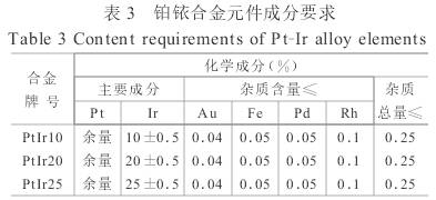 銥是一(yī)種揮發性非(fēi)常強的金屬(shǔ),在1500℃時其蒸汽(qi)壓比鉑低兩(liǎng)個數量級[2],在(zài)高溫熔煉時(shí)其揮發性是(shì)鉑的幾十🏃倍(bei),所以在進行(hang)合金的成分(fèn)設計時必須(xū)考慮銥元素(sù)的過量問題(tí)。最常用的鉑(bó)銥合金觸點(dian)材料牌号有(yǒu)PtIr10、PtIr20、PtIr25 3種合金,成分(fèn)🚶要求見表3[3]。