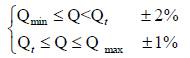 摘 要:闡述(shu)高壓氣體渦輪流(liú)量計 并介紹工作(zuo)原理、結構特點、性(xing)能測試、計量特性(xìng)等,以此證明高壓(ya)氣體渦輪流量計(jì)可以作爲貿易計(ji)量應用在高壓管(guan)線上 0 引 言 天然氣(qì)作爲重要的潔淨(jìng)能源,近幾年在城(cheng)市中的應用迅👉猛(meng)💋發展。在當今市場(chǎng)經濟的體制下,人(rén)們對經濟效益的(de)日益重視,作爲供(gong)氣、用氣雙方進行(hang)貿易結算依據的(de)計量問題日益🧑🏾🤝🧑🏼突(tū)顯起來[1],特别對高(gao)壓天然氣的計量(liàng)形勢尤爲嚴峻,“計(ji)量就是計錢”的✉️觀(guān)念深入人心。而世(shì)界能源供求日益(yi)緊張,人們都♍十分(fen)關心并尋求一種(zhǒng)精度高,适應性強(qiáng)的流🔆量計來測量(liang)天然氣流量,以減(jiǎn)少、避免天然氣貿(mào)易糾紛。目前國内(nèi)渦輪流量計生産(chan)廠家均是以🐪中低(di)壓爲主,對高壓的(de)涉及較少,規格種(zhong)類繁多、結構複雜(za)。供♈油系統、防沖擊(ji)結構等因🔞素均是(shì)直接影響流量計(jì)☁️使用壽命。與此同(tong)時,爲了順應國家(jiā)能源安全的戰略(luè)部🐕署,保證國家能(neng)源輸運安全,響應(yīng)建設“創新型”國家(jiā)的發展戰略,自主(zhǔ)知識産權且滿📐足(zú)工業性應用要求(qiu)的精度佳高壓渦(wō)輪流量計♈。 1 渦輪流(liú)量計的工作原理(li)與流量特性 1.1 工作(zuo)原理 氣體渦輪流(liu)量計 是一種帶機(jī)械計數器并用于(yu)測量氣體流量的(de)流♊量⛹🏻♀️計,其工作原(yuan)理如圖1 所示:當氣(qì)流進入流量計時(shi),首先經過特殊整(zhěng)流🈲器整🐕流并加速(sù),在流體的作用下(xià),渦輪克服阻力矩(jǔ)開始轉動。當力矩(ju)達到平衡時渦輪(lun)轉速穩定,此時其(qi)轉速與🆚氣體工況(kuang)👄流量成正比,并通(tōng)過齒輪減速傳動(dòng)以及磁耦合😍聯接(jie)驅動字🔱輪計數器(qi)轉🐉動,直接累積氣(qì)體的工況體積總(zǒng)量。 因通過渦輪的(de)流量與渦輪轉速(sù)成正比,高頻信号(hào)脈🈲沖輸出頻率 與(yu)渦輪轉速存在下(xia)列 |=nZ 對一定精度的(de)流量計而言,在一(yī)定的流量範圍内(nei),其😄儀表✊系數K 應接(jie)近常數。理論上儀(yí)表系數K 與體積流(liu)量🔴q成如下關系,即(ji) 式中:K—儀表系數,爲(wèi)工況條件下每立(li)方米通過流量💃傳(chuan)感器時輸出的脈(mo)沖數,1/m3 ; q—工況體積流(liú)量m3 s 。 綜上所述,儀表(biǎo)系數K 在實際上除(chú)渦輪導程、葉片數(shù)、葉片🈚寬度、螺旋升(sheng)角、流量計流體通(tong)道等結構因素有(you)關外,還🌈與介質流(liú)體粘性、軸承本身(shen)阻尼、軸承潤滑油(you)粘度等有關,若以(yi)上其中一種或幾(jǐ)種相關因素發生(sheng)改變,則儀表系數(shu)K就會相應改變。故(gu)每台流量計均應(ying)通過檢定得出儀(yi)表系數。 1.2 流量特性(xìng)介紹 K—q關系曲線稱(cheng)爲渦輪流量計的(de)流量特性曲線。理(lǐ)論上, K—q關🐕系應是一(yī)條水平直線,但實(shí)際上由于在不同(tóng)的流動狀态下,流(liú)體産生阻力機理(lǐ)不同,效果也不同(tóng),所以使特性曲線(xian)成爲曲線形狀。 以(yi)✍️DN50 爲例,如圖2 所示。 由圖2 可見,儀表(biao)系數可分爲二段(duan),即線性段和非線(xian)性段。在㊙️非🌏線性段(duan), 實際特性受軸承(chéng)摩擦力、流體粘性(xìng)阻力影💋響較大。當(dāng)流量低于Qmin 時,儀表(biǎo)系數随着流量迅(xùn)速📧變化。壓力損失(shī)✍️與流量的平方成(chéng)正比關系。通常線(xian)性段約爲工作段(duàn)的2/3,其特性與渦輪(lun)結構參數及流體(tǐ)粘性有關。随流量(liàng)的變化其儀表系(xì)數K 也會有一定的(de)♌變㊙️化,但變化不大(dà)👨❤️👨,通常将其變化幅(fu)度稱爲流量計的(de)計量準确度。對于(yú)産品設計而言,期(qi)望能将線性段的(de)流量範圍拓展,一(yi)台流量計能覆蓋(gài)同口徑的不同流(liu)量範圍,使得産品(pǐn)量程比變寬💁從而(er)降低生産管理與(yu)生産批量加工成(chéng)本。對于1.0 級💯的高壓(ya)氣體渦輪流量計(ji),以Qt(0.2Qmax)爲分界流量點(diǎn),将計量線性分爲(wei)兩段,其中一段的(de)最大㊙️允許誤差爲(wèi)±2%,而另一段的最大(dà)允許誤差爲±1% 。按圖(tú)2 所示,通常每台渦(wō)輪流量計均有較(jiào)爲相🍓似特性曲線(xiàn),若将可測量流量(liàng)🌈範圍做寬,就能在(zài)同口徑不同流量(liang)範圍進行分段截(jié)取,以實現一台流(liú)量計能覆蓋同口(kou)徑的不同流量範(fan)圍。 2 高壓渦輪流量(liàng)計研制 高壓氣體(ti)渦輪流量計主要(yao)是由鍛鋼殼體、表(biao)芯總成、機械⭕顯示(shi)計數器、高壓油泵(beng)、高低頻信号輸出(chū)(按客戶要求選配(pèi))等組成;根🔅據EN12261 要求(qiú),設計高壓渦輪流(liú)量計内部結構、外(wài)觀等并對殼體與(yǔ)軸承進行設計💜計(ji)算;研究高壓供油(yóu)🐉系統的結構設計(ji),避免軸承潤滑油(you)回流等不良現象(xiàng);研究渦輪防沖擊(ji)結構設計🔞,緩沖因(yin)流量波動引起瞬(shùn)間沖擊力;研究雙(shuāng)向增計數的新型(xing)機械計⭕數器,主要(yao)解決了流量計由(you)于其單♉向計數的(de)特性,而導緻倒置(zhì)安裝時出現計數(shù)不增反減的😄問題(tí)。 2.1 殼體與軸承設計(ji)計算 高壓氣體渦(wo)輪流量計殼體作(zuò)爲主要的承壓零(líng)部件,應進✔️行強度(dù)校核計算。