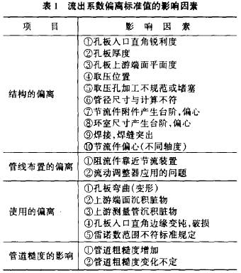 孔(kǒng)闆流量計幹(gàn)校後在現場(chang)使用時其流(liu)出系數可能(neng)偏離标準值(zhi)的影響因素(su)如表l所示。