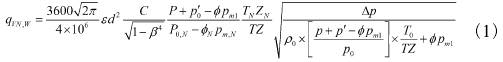 式(shì)(1)中,基于結算狀(zhuang)态下的濕煤氣(qì)體積流量用qVN,W表(biǎo)示,單位爲m3/h;計算(suàn)中所涉及的煤(mei)氣可膨脹因數(shù)用表示;經過🏃🏻♂️孔(kong)闆的流🐕出因🐪數(shu)用e表示;孔闆内(nèi)徑d與管道内徑(jing)D之間🌈的比值用(yong)β表示;處于正常(chang)運行❌狀态下的(de)濕煤氣表壓力(li)用p表示,單位爲(wei)kPa;當地大氣平🔴均(jun1)壓力用ρ′0表示,單(dān)位爲kPa;濕煤氣結(jié)算壓力用P0,N表示(shì),單位爲kPa;處于🍓結(jie)算狀态下飽和(hé)水蒸汽絕對壓(ya)力用pm,N表示,單位(wèi)爲kPa;濕煤氣的相(xiang)對濕度用P0,N表示(shì),可用%衡🔱量;結算(suàn)溫度及濕煤氣(qi)溫度用TN、T表示,單(dān)位爲K;氣體壓縮(suo)因子分别用ZN、Z表(biǎo)示;孔闆壓差用(yòng)表示,單位爲kPa;标(biāo)準氣壓下幹煤(mei)氣的密度用ρm1表(biǎo)示,單位爲kg/m3;處于(yú)正常運行工況(kuang)下的飽❄️和水蒸(zhēng)氣密度用表示(shì),單位爲kg/m3,T0與P0都爲(wei)常數,大小分📐别(bié)爲273.15K、101325kPa。