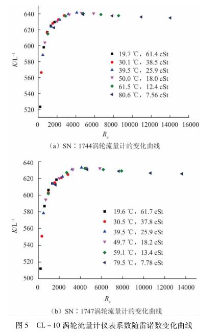 摘要(yào):以變溫航(háng)空潤滑油(you)爲工作介(jiè)質的渦輪(lun)流量計 儀(yí)表系數修(xiu)正方法,利(li)用變溫航(hang)空潤滑油(yóu)流量标準(zhun)裝置⛷️對4支(zhi)渦輪流量(liang)計在多個(ge)溫度點下(xia)進行了校(xiào)準試驗,通(tong)過🤟雙指💰數(shu)衰減函數(shù)對校準結(jié)果進行拟(nǐ)合修正。結(jie)果表明,各(gè)🤟溫度點和(hé)流量點渦(wō)輪流量計(ji)儀表系數(shu)與校準結(jié)果誤差小(xiǎo)于1%,修正方(fāng)法具有⁉️較(jiao)好的通用(yòng)性。 0引言 渦(wō)輪流量計(jì)[1]因具有重(zhòng)複性好、量(liang)程範圍寬(kuan)、适應性🌈強(qiáng)、精度高及(ji)體積小等(děng)特點,被廣(guǎng)泛應用于(yu)流量試💋驗(yan)、石油計量(liang)、工業生産(chan)及航空發(fā)動機研制(zhì)試驗等領(ling)域。目前,在(zai)低粘度工(gōng)作介質(如(ru)航空煤油(yóu))流量測量(liang)中,渦輪流(liú)量計具有(you)良好性能(neng)表現;而在(zài)粘溫特性(xing)較差的航(hang)⭐空潤滑油(yóu)流量測量(liang)中,因其粘(zhan)度随溫度(dù)變化較大(da)(40℃時運動粘(zhan)度約爲17cSt,100℃時(shi)粘度約爲(wei)5cSt)且渦輪流(liú)量計對❄️介(jie)質粘🔅度較(jiào)爲敏感,直(zhí)接使用渦(wo)輪流量計(jì)校準結果(guǒ)尚無法⭕滿(mǎn)足試驗要(yao)求。 以航空(kōng)潤滑油流(liu)量标準裝(zhuang)置爲試驗(yàn)平台,對4支(zhī)渦輪🏃🏻流量(liang)計在不同(tóng)溫度點進(jin)行校準試(shì)驗,對儀表(biǎo)系數随粘(zhān)度和流量(liàng)變化關系(xi)進行分析(xī),并通過雙(shuang)指數衰減(jiǎn)函數對儀(yi)表系數(K)和(he)頻率與粘(zhan)度之商(F/υ)進(jin)行曲線拟(ni)合。 1試驗設(shè)備 1.1标準裝(zhuang)置 航空潤(run)滑油流量(liang)校準裝置(zhi)如圖1所示(shi)。該裝置采(cǎi)用電機驅(qū)動标準計(jì)量油缸的(de)結構形式(shi),主要由計(ji)量油缸、電(dian)機及控制(zhi)器、滾珠絲(si)杠、直線導(dao)軌、校準管(guǎn)路、切換閥(fa)門、油箱、控(kong)溫機組、溫(wēn)度壓力傳(chuan)感器、測量(liàng)光栅尺、數(shù)據采集系(xì)統、測量控(kong)制計算機(jī)等部件構(gòu)成。裝置采(cai)用伺♈服電(dian)機驅動标(biao)準計量油(you)缸産生标(biao)準流量源(yuan),計量油📱缸(gāng)同時作爲(wèi)容積标準(zhun),與光栅配(pei)合構成流(liú)量測量系(xì)統。标準裝(zhuāng)置技術指(zhi)标爲:流量(liang)範🛀🏻圍爲0.5~160L/min;擴(kuo)展不确定(ding)度⁉️爲0.05%(k=2);溫度(dù)範圍爲20~120℃。 1.2被試(shi)流量計 試(shi)驗所用流(liú)量計是某(mou)研究所渦(wō)輪流量計(jì),流量計👌信(xin)息如🌈表1所(suo)示。 2校準試(shi)驗結果 利(lì)用航空潤(rùn)滑油流量(liàng)标準裝置(zhi)在20,30,40,50,60,80℃下分别(bié)對4支渦輪(lun)流量計進(jìn)行校準試(shi)驗。流量計(jì)校準流量(liàng)點分别爲(wèi)6,17,28,39,50L/min;流量計校(xiao)準🥰流量點(dian)分别爲12,24,36,48,60L/min。圖(tú)2和圖3分别(bié)是SN:1744和SN:1655兩支(zhī)渦輪流量(liang)計在各溫(wēn)度點儀表(biǎo)系數K随流(liú)量q變化曲(qu)線,從中可(kě)以看出♍,不(bú)同溫度點(diǎn)下流量計(jì)儀表系👨❤️👨數(shù)差異很大(da)。 4支流量(liang)計各流量(liang)點q下儀表(biǎo)系數誤差(cha)ET曲線如圖(tú)4所示。 儀表(biǎo)系數差異(yi)ET爲 式中:K80爲(wei)某流量點(dian)80℃下儀表系(xì)數,L-1;K20爲某流(liú)量點20℃下儀(yi)表系數,L-1。 經(jing)計算可得(de),低流量點(dian)儀表系數(shù)最大相差(chà)14%以上,高💯流(liú)量🏒點儀表(biǎo)系數最小(xiao)相差約2%。 3修(xiū)正方法研(yán)究 3.1儀表系(xì)數與雷諾(nuo)數關系 渦(wō)輪流量計(ji)不同溫度(du)點儀表系(xì)數差異很(hen)大,主要🏃🏻♂️原(yuan)因是溫度(du)改變導緻(zhì)航空潤滑(hua)油粘度改(gǎi)變。校準結(jie)果中儀表(biǎo)系數随流(liú)量變化曲(qǔ)線未體現(xiàn)滑油粘度(du)對渦輪流(liú)量計的影(ying)響,流量計(jì)儀表系數(shu)K随雷諾♍數(shù)的變化曲(qǔ)線如圖5和(he)圖6所示。同(tong)一支流量(liàng)計在雷🙇🏻諾(nuò)數相近的(de)情況下,其(qí)對應的儀(yi)表系🈚數很(hen)接近,儀表(biao)系數是雷(lei)諾數的單(dan)值函數。雷(lei)諾數Re關系(xi)式爲 式中(zhōng):q爲體積流(liú)量,m3/s;d爲渦輪(lun)流量計内(nèi)徑,m;ν爲某溫(wen)度點🌈下滑(hua)油運動粘(zhan)度,cSt; 多溫度(dù)點下實際(jì)測量航空(kong)潤滑油粘(zhān)度,并拟合(he)粘度ν與🔞溫(wen)🚶度T函🤩數關(guān)系,進而通(tōng)過該函數(shù)關系計算(suàn)校準試驗(yan)各溫度‼️點(diǎn)下介質粘(zhān)度。粘度與(yǔ)溫度函數(shu)關系式爲(wei) 3.2儀表系數(shu)曲線拟合(he) 儀表系數(shù)與雷諾數(shù)存在單值(zhi)函數關系(xì),而雷諾數(shù) 可由平均(jun)流速和運(yùn)動粘度計(ji)算得到,所(suo)以儀表系(xi)數K是⛷️流🙇🏻量(liàng)計輸出頻(pin)率與運動(dong)粘度之商(shang)(F/v)的函數。研(yan)究最終确(què)定采用雙(shuang)指數衰減(jiǎn)函數進行(háng)拟合,雙指(zhǐ)✍️數衰減函(hán)數Kfit表示爲(wèi) 表2是流量(liang)計拟合曲(qu)線系數。通(tōng)過R-square值對拟(ni)合度進行(háng)❗評估,4支流(liu)量計拟合(he)優度值處(chu)于0.992~0.997之間,拟(ni)合結果非(fei)常好🏃♂️。 SN:1744和SN:1655兩(liang)支流量計(ji)拟合曲線(xiàn)分别 如(rú)圖7與圖8所(suo)示。通過拟(ni)合公式計(ji)算各溫度(dù)和頻率下(xia)的