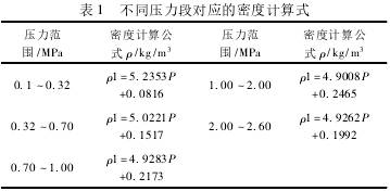 解決這(zhe)個矛盾(dùn)的方法(fa)是分段(duan)拟合,即(ji)在不同(tong)的壓力(li)段采用(yòng)🔴不同的(de)系數和(he)常數。表(biao)1所示爲(wèi)不同壓(yā)力段對(duì)應的不(bú)同密度(du)計算式(shì)[4]。