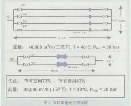 摘要:通過(guò)大量詳實的理(li)論推導、可信的(de)應用實例,經過(guò)技術性能、現場(chang)安裝使用、長期(qī)使用、經濟性幾(jǐ)個方面的比較(jiao)詳細論述了超(chao)聲波流量計 與(yǔ) 孔闆流量計 的(de)優劣,提出高壓(yā)、大流量計量優(you)先選用超聲波(bo)流量🌈計的建🔞議(yì)。 在我國長輸和(hé)集輸管道的工(gong)程實踐中,孔闆(pǎn)流量計特别是(shì)🏃🏻高級孔闆閥長(zhang)期占據統治地(di)位。而随着我國(guo)石油天然氣事(shì)業的大規模發(fā)展,在高壓、大流(liu)量計量方面,孔(kong)闆流量計越來(lai)越受到自身結(jié)構的限制而顯(xian)示出其局限性(xing)。近年來一些新(xin)型的流量✔️計在(zai)國外取👄得理論(lùn)和實踐成功的(de)基礎上,也積極(jí)投身國内市場(chang),取得一系列成(chéng)功經驗。特别是(shì)超聲波流量計(ji)在高壓⛷️、大流量(liang)場合具有明顯(xiǎn)優勢,大有取代(dài)高級孔闆閥之(zhī)⭕勢。由于認識的(de)誤區很多人認(ren)爲超聲波流量(liàng)計性能好但價(jià)格昂貴,事實是(shi)不是🌂如此呢?通(tong)過一系列比較(jiao)可以得到更正(zheng)确的結論。 1孔闆(pǎn)流量計的使用(yong)要求 孔闆流量(liang)計(流量與差壓(yā)的平方成正比(bi))的使用條件、使(shǐ)🆚用範圍和對管(guan)道的要求: (1)流體(ti):應是單相、均質(zhi)的牛頓流體,在(zài)通過節流裝置(zhì)時🐅不發生相變(biàn)和析出雜質,在(zài)節流裝置中不(bu)得有任何形式(shì)的物🏒質黏附或(huò)聚集。 (2)管道:僅适(shì)用于圓管,管徑(jing)大小有一定限(xian)制,上下遊有很(hen)🐆長✍️的🍓直管段,而(er)且節流件上遊(yóu)10D、下遊4D直管段的(de)内表🏃♂️面粗糙度(dù)、圓度🌈要嚴格符(fu)合具體規定。 (3)流(liu)态:流動應是連(lián)續、穩定的,不是(shi)脈動流;在受到(dao)節流件影響✍️前(qián)已形成典型的(de)、充分發展的流(liu)速分布(紊流🐪速(sù)度分布),流線與(yu)管軸線平行,不(bu)得爲旋轉流。 2技(ji)術性能的比較(jiao)(見表 1)2.1量程比低(di) 由于結構特點(diǎn),孔闆流量計是(shi)通過節流件來(lai)完成測量的🧑🏽🤝🧑🏻,所(suǒ)以其量程比通(tong)常隻有1:3,最高可(ke)達1:10,而超聲波流(liú)量計沒有任何(he)阻流件,其量程(cheng)比可達1:200。 這兩個(ge)數據表明:如果(guo)實現一種測量(liàng)方案,假定其✏️流(liú)量範👄圍是從1m3/h~40m3/h,使(shi)用超聲波流量(liang)計隻需要一路(lù)工藝計🌈量回路(lu)就可以實現,如(ru)果采用孔闆流(liú)量計,需要多路(lù)💁才能實🚶現。 2.2壓損(sun) 由于孔闆流量(liàng)計的結構有阻(zu)流件,超聲波流(liú)量計🆚沒有阻流(liu)件,那麽顯而易(yì)見:孔闆流量計(ji)的壓損很㊙️大,超(chao)聲波流量計壓(ya)損實❌際可以忽(hu)略不計。節流裝(zhuang)置能耗計算如(rú)下: 以下以1個典(dian)型用戶用氣參(cān)數進行能耗計(ji)算:用氣量160×104m3/d,用氣(qì)壓力0.6MPa。 節流裝置(zhì)壓力損失計算(suan)式:(最大刻度差(cha)壓50kPa、β=0.68) δP=(1-0.24β-0.52β2-0.16β3)ΔP =0.5486×50 =27.43kPa 節流裝置能(neng)耗計算式:(壓縮(suo)機效率η=0.8) W=δp×QV/η =27430×18.5185/0.8 =634953W 計算耗(hao)能費:能源價0.4元(yuan)/kWh 耗能費(年)=(W/1000)×(運行(hang)時數/年)×(元/kWh) =(634953/1000)×365×24×0.4 =2224876(元/年(nian)) 該計算僅隻是(shi)能耗損失,不包(bāo)括壓縮機運行(hang)等費用。 2.3精度 孔(kǒng)闆流量計的計(ji)量精度理論上(shàng)可以達到1%,但是(shi)通過大量的實(shí)🐉踐證明,由于孔(kǒng)闆流量計抗幹(gan)擾能力較差🔞,現(xiàn)場精度最高能(néng)達到2%,一般情況(kuàng)下在3%左右。 超聲(sheng)波流量計的精(jīng)度則可以達到(dào)0.5%甚至更高。假定(ding)某🤞個計量站♈的(de)輸氣量爲350萬Nm3/天(tian),工業用氣每标(biao)方的價格爲0.6元(yuan),費用⛹🏻♀️偏差比較(jiào)😍見表2。 由此可見(jiàn)選擇兩種不同(tóng)的計量儀表,對(dui)于測量的影響(xiǎng)會💃🏻有多⛷️大。 2.4測脈(mo)動流 由于孔闆(pǎn)流量計是靠孔(kong)闆前後的差壓(yā)信号來實現流(liu)量測量的,脈動(dòng)流會使孔闆前(qián)後的差壓不準(zhǔn)✌️,所以孔闆流量(liàng)⭐計不适合測脈(mò)動流,而超聲波(bo)流量計可以測(ce)量脈動流的強(qiáng)度并♍消除其幹(gan)擾,所以它☔适合(hé)測脈動流。 2.5測雙(shuāng)向流 孔闆流量(liàng)計依據一個節(jiē)流元件來實現(xiàn)測量目的,這個(gè)節流🌍元件具有(yǒu)嚴格的方向性(xing),因此孔闆流量(liang)計無法測雙向(xiang)流。超聲波流量(liàng)計隻與超聲信(xìn)号在流體中的(de)傳播時間有關(guan),因此可以測雙(shuāng)向流。 2.6測濕氣體(tǐ) 孔闆流量計不(bú)适合測量濕氣(qi)體;若被測氣體(ti)爲濕氣體,那♉麽(me)在孔闆流量計(jì)的前端容易積(jī)液,使得上🐆下遊(you)差壓産生⛷️變化(hua),而孔闆流量計(ji)正是根據上下(xia)遊的壓差來測(ce)🚶量流量的,如果(guo)🥵差壓産生變化(hua),則孔闆流量計(ji)不可能準✂️确測(cè)量氣體的流量(liàng)。 超聲波流量計(jì)具有自檢測功(gong)能,如果所測量(liang)氣體爲❤️濕氣體(ti),對超聲波流量(liàng)計産生影響時(shi),儀表本身可以(yi)修正,因此超聲(shēng)👌波流☎️量計适用(yong)于濕氣體的測(cè)量(濕氣☂️體體積(ji)組分含量低于(yu)5%)。 2.7清洗計量管路(lu) 孔闆流量計本(běn)身有阻流件,清(qīng)洗球無法
