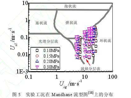 可知,測試工(gōng)況位于光滑分(fèn)層流、波狀分層(ceng)流、環狀流😘以及(ji)彈⭕狀流區域。其(qi)中大部分工況(kuang)點位于波狀分(fen)層流和🔞環狀流(liu)區域。