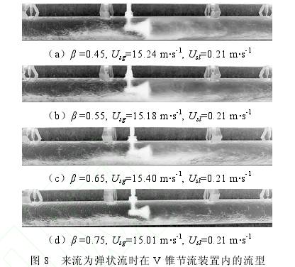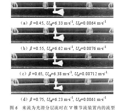 (2)對(dui)于光滑分層流(liú)和波狀分層流(liú),在錐體喉部加(jiā)速的影響下,下(xià)✉️遊管道上壁面(mian)有液滴或液膜(mo)出現,且在一定(ding)條件下,V錐下🌈遊(you)可轉變爲環狀(zhuang)流;彈狀流流♌經(jing)V錐後,則轉變爲(wèi)氣核中夾帶大(da)量液滴的環狀(zhuang)流;V錐對環狀流(liú)氣液相分布影(ying)響較小。