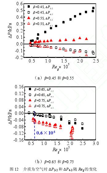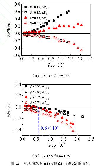 2.2.2單相流體(tǐ)壓力恢複長度(dù)實驗研究了空(kōng)氣和水兩種單(dan)相介質🌈情況下(xià)V錐流量計的壓(yā)力恢複長度。由(yóu)圖12可知,測💛量介(jie)質爲空氣時,對(dui)于節流比爲0.45和(he)0.55的V錐節流裝置(zhi),其下🔞遊壓力在(zài)V錐下☔遊3D處并未(wei)完全恢複,而6D時(shí)可以認爲壓力(li)🔞已完全恢複,因(yīn)此其♌壓力恢複(fu)💛長度大于3D;對于(yú)節流比爲0.75的V錐(zhui)節流裝置,其下(xià)遊壓力在V錐下(xià)遊3D處則可以完(wan)全恢複;節流比(bǐ)爲0.65的🔴V錐節❌流裝(zhuāng)置,當氣體雷諾(nuo)數Reg≥0.6×105時,也可以認(rèn)爲其壓力在V錐(zhuī)🐅下遊3D處已完全(quan)恢複。當流動介(jiè)質爲水時㊙️,如圖(tú)13所示爲△P3-2和△P4-3随液(yè)🏃🏻♂️體雷諾數Rel的變(biàn)化,4個不同節流(liu)比的⭐V錐節流裝(zhuāng)置下遊壓力恢(huī)複處💚的位置與(yu)測量❓空氣時所(suǒ)需的恢複長☎️度(du)基本相同。