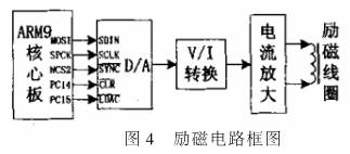 的(de)勵磁電路的任(rèn)務是向勵磁線(xian)圈提供一穩定(ding)的驅動電流。電(diàn)💰流波形爲方波(bo)、三值方波和梯(tī)形波[11]等形式,波(bō)形變化✔️的目的(de)是結合信号處(chu)理電路,分析在(zài)不同勵磁方式(shi)下電磁流量計(ji)的精度、零點穩(wěn)定🌂性和抗能力(li)等多項🔞指标。該(gai)電路由核心🌈闆(pǎn)的SPI2口輸出數字(zì)量,經過D/A轉換形(xíng)成模拟信号,經(jīng)㊙️V/I轉換激勵和🐪帶(dài)有電流負🏃♀️反饋(kui)的電流放大器(qì)輸出,适合各種(zhong)勵磁波形的變(biàn)化。結構框圖如(rú)圖4。D/A轉換電路采(cǎi)用AD7243芯片☎️[5],實現12位(wèi)的SPI同步串行🌐輸(shu)入,-5~+5V的雙極性輸(shu)出。與ARM9核心闆的(de)SPI2口對接,如圖4所(suǒ)示。