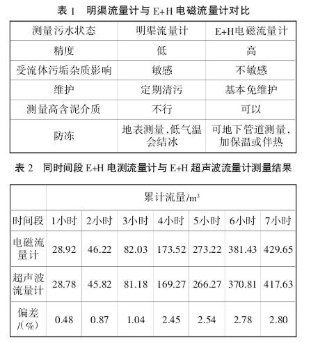 基(ji)于明渠(qú)和電磁(ci)流量計(ji)的測量(liang)原理不(bu)同,兩種(zhǒng)測量方(fāng)法無法(fa)直接比(bi)對,用表(biǎo)格說明(ming)。如表1。
