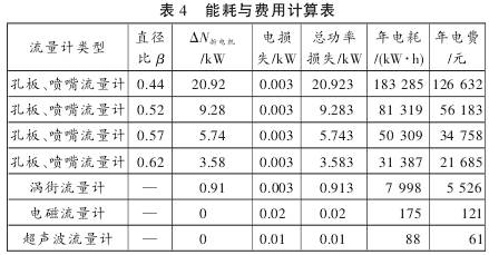 摘要:爲了(le)分析常用流量(liàng)計 的能耗,理論(lùn)推導了常用流(liu)量計能耗的計(jì)算公式🔴,并結合(hé)實際工程數據(jù)進行了計算。計(ji)算結果表明,标(biao)準孔闆和标準(zhǔn)噴嘴流量計的(de)能耗最大,且能(néng)耗随着直徑比(bǐ)的增大而降低(dī); 渦街流量計 和(hé) 電磁流量計 的(de)能耗次之; 超聲(shēng)波流量計 的能(néng)耗最低。因此在(zài)保證精度的前(qián)提下,采用無節(jiē)流、阻✊流🔞元件的(de)流量計具有較(jiao)好的經濟效益(yì)。 0引言 流量計量(liang)是工業和市政(zhèng)系統中比較重(zhong)要的系統,是貿(mào)🆚易結算和效益(yi)分析的重要依(yi)據。對于DN400mm及以上(shàng)管徑來說,常用(yong)的流量計有差(cha)壓式流量計(例(li)如孔闆流量計(ji)、噴嘴流量計等(deng))、渦街流量計、電(dian)磁流量計以及(jí)超聲波流量計(ji)等。 通常,設計單(dān)位和建設單位(wèi)在選擇流量計(ji)時主要🔆考慮計(jì)量的精度、精度(dù)标定的方便程(chéng)度、表計的初期(qi)投資和表計的(de)可靠性等因素(su),一般對表計的(de)能耗不會做太(tài)多的分析。本文(wen)就常用流量計(ji)的能耗進行了(le)分析論證。 流量(liàng)計量儀表的能(néng)耗主要體現在(zai)以下兩個方面(mian),即因儀表⛱️的🐇節(jie)流導緻的機械(xie)損失和儀表的(de)電損失[1]。兩🌈者之(zhi)和可🌐以作♉爲流(liú)量儀表的總能(néng)耗。 1常用流量計(ji)介紹 1.1差壓式流(liú)量計 差壓式流(liu)量計 是根據安(ān)裝于管道中流(liú)量檢測件産生(sheng)的差壓、已知的(de)流體條件和檢(jiǎn)測件與管道的(de)幾何尺寸來計(jì)算流✍️量的儀表(biao)💘。差壓⚽式流量計(jì)由一次裝置(檢(jian)測件)和二次裝(zhuang)置(差壓轉換和(he)流量顯示儀表(biǎo))組成。差壓式流(liú)量計是一類應(ying)用最廣泛的流(liú)量計,在各類流(liu)量儀表中其♈使(shǐ)用量居首位。 檢(jian)測件又可按其(qi)标準化程度分(fen)爲兩大類,即标(biāo)準檢測件和非(fēi)标準檢測件。其(qí)中,标準孔闆一(yī)般在工☎️程中采(cai)用得最📧多。 1.2渦街(jiē)流量計 渦街流(liu)量計是根據卡(kǎ)門(Karman)渦街原理研(yán)究生産的。它的(de)☂️特點是壓力損(sǔn)失小、量程大、精(jīng)度高,在測量工(gōng)況體積流量時(shi)幾乎不受流體(tǐ)密度、壓力、溫度(du)、黏度等參數的(de)㊙️影響。 1.3電磁流量(liang)計 電磁流量計(ji)是根據法拉第(di)電磁感應定律(lü)制成的☔一種👄測(ce)🌏量導電性液體(ti)的儀表。它的特(te)點爲測量通道(dao)是一段光滑🍉的(de)直管,不會阻塞(sāi)、不産生壓力損(sun)失,節能效果好(hǎo);流量大,口徑寬(kuan)。 1.4超聲波流量計(ji) 超聲流量計是(shi)通過檢測流體(ti)流動對超聲束(shu)(或超聲脈沖)的(de)作用以測量流(liú)量的儀表。超聲(sheng)流量計屬無阻(zǔ)📧礙流☁️量計,是解(jiě)決流量測量困(kùn)難問題的一類(lei)流量計💛,特别是(shi)在大口徑流量(liang)測量方面,有較(jiao)突出🚶的優點。近(jìn)年來,超聲流量(liang)計是發展迅速(sù)☁️的流量計之一(yi)。 2常用流量計的(de)壓力損失 2.1差壓(ya)式流量計的壓(yā)力損失 根據GB/T2624.2—2006用(yong)安裝在圓形截(jié)面管道中的差(chà)壓裝置測量滿(man)管流體流量第(dì)2部分: 孔闆流量(liang)計 和GB/T2624.2—2006用安裝在(zài)圓形截面管道(dào)中的差壓裝置(zhi)測量滿⛹🏻♀️管流體(ti)🔞流🔴量第3部分:噴(pēn)嘴和文丘裏噴(pēn)嘴[2-3],标準孔闆及(jí)噴嘴的壓損公(gong)式🍉爲: 式(1)~(6)中,Δω爲孔(kong)闆及噴嘴的壓(yā)力損失,Pa;K爲孔闆(pǎn)及噴嘴的👅壓力(lì)損失系數;ρ1爲流(liú)體的密度,kg/m3;v爲流(liú)體的流速,m/s;β爲直(zhí)📧徑比;C爲流出系(xì)數;ReD爲根據管道(dao)直徑D計算出的(de)雷諾數;A爲由🆚管(guǎn)道雷諾數和直(zhí)徑比确定的😍管(guǎn)道系數;L1爲孔闆(pǎn)上遊端面到上(shang)遊取壓口的距(jù)離l1除以管道直(zhí)徑D得出的商🔴;M2'爲(wei)位置系數;L2'爲孔(kǒng)闆下遊端面到(dào)下遊取壓口的(de)距離l2'除以管道(dao)直徑D得出的商(shāng)。 對于不同的取(qu)壓方式,L1與L2'的取(qǔ)值如下:對于角(jiǎo)接取🥰壓✌️口🈲,L1=L2'=0;對🌂于(yu)D和D/2取壓口,L1=1,L2'=0.47;對于(yú)法蘭取壓口,L1=L2'=25.4/D。 2.2渦(wō)街流量計的壓(yā)力損失 根據JB/T9249—2015渦(wo)街流量傳感器(qi)[4],可推導出渦街(jie)流量計壓力損(sǔn)失公式爲: 式(7)中(zhong),δp爲永久壓力損(sǔn)失,Pa;CD爲流體阻力(lì)系數,一般取2.4;ρ爲(wei)流體密度,kg/m3;U爲平(ping)均流速,m/s。 2.3其他流(liú)量計的壓力損(sǔn)失 電磁流量計(ji)和超聲波流量(liàng)計均無節流元(yuán)件,其壓力損失(shī)約爲0Pa。 3常用流量(liang)計機械功率損(sǔn)失 流量計的機(ji)械功率損失由(you)式(8)确定: 式(8)中,ΔN表(biao)計爲流量計的(de)機械功率損失(shī),kW;Q爲體積流量,m3/h。 折(shé)合到電機處的(de)功率損失爲: 式(shì)(9)中,ΔN折電機爲折(shé)合到電機處的(de)功率損失,kW;η爲水(shui)泵效率🧑🏾🤝🧑🏼η1與🤩電機(ji)效率η2之積。 4常用(yòng)流量計的直接(jiē)電耗 通過查各(gè)類流量計的樣(yang)本,可得各種流(liu)量計的用❗電功(gōng)率如表1所示。 5标(biāo)準孔闆能耗的(de)定量計算 下面(mian)以山東省城鄉(xiāng)規劃設計研究(jiu)院2018年市政施工(gōng)圖設計項目🔱中(zhōng)的一個設計實(shi)例
