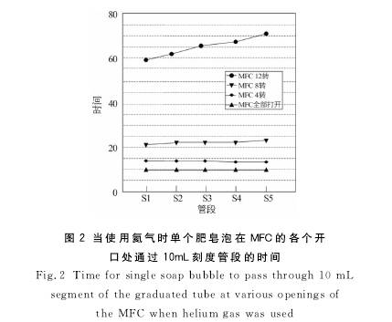 摘 要:文章(zhāng)通過肥皂(zao)膜在低流(liú)速氣體中(zhōng)的擴散特(tè)點,包括:肥(féi)⛷️皂🚩膜在不(bu)同氣體的(de)擴散速度(du)比較;肥皂(zao)膜兩側氣(qì)體濃度差(cha)異不同的(de)擴散速度(dù)比較;單個(gè)肥皂膜和(hé)多個☎️肥皂(zào)膜的擴散(san)速度比較(jiao)。實驗結果(guo)⛷️表明,在測(cè)🈲量氣體流(liu)量時用多(duō)個肥皂膜(mó)并保證氣(qì)泡兩側濃(nóng)度差異較(jiào)小,能🔱夠保(bǎo)證測量結(jié)果的穩定(ding)性和準确(que)性。 0引言 肥(féi)皂膜流量(liàng)計 (也稱爲(wei)肥皂泡流(liu)量計),用于(yu)測量壓力(lì)接近環境(jìng)壓力的微(wei)小氣㊙️體流(liu)量。肥皂膜(mó)流量計具(ju)有成本低(dī)、操🏃♂️作簡單(dān)等特點💯,适(shi)用于任何(hé)氣體或液(yè)體流量的(de)檢測,是環(huan)保、勞動🈚衛(wei)生、科✔️研、工(gong)礦🧑🏾🤝🧑🏼、各大院(yuàn)校等部門(mén)校準中、小(xiǎo)氣體流量(liàng)計的必備(bèi)儀🤩器。皂膜(mó)流量計原(yuán)理是利用(yong)肥皂液在(zai)标準量管(guan)中形成皂(zào)膜,被測氣(qi)體流入量(liang)管時❓,推動(dòng)皂膜在量(liàng)管🐆中運動(dòng),根據皂膜(mó)在量管中(zhōng)移動相應(yīng)🏃♂️體積所用(yong)時間,計⁉️算(suàn)出氣體的(de)流量。時間(jian)可以用秒(miǎo)表測量,或(huo)者采用更(geng)㊙️高精度的(de)光電子計(jì)時裝置[2]。采(cǎi)用光電子(zi)計時的電(dian)子肥皂😄膜(mó)流量計相(xiang)對昂貴,但(dàn)其精度更(gèng)高。 在實際(jì)使用中會(huì)出現很多(duo)問題。在校(xiào)準氦氣的(de)流速時,肥(fei)皂膜在通(tong)過固定體(ti)積所需的(de)時間很大(da)程度上取(qu)決于氣泡(pao)的量和計(jì)量所用管(guan)段的情況(kuang)。通過解決(jué)在使用肥(féi)皂膜流量(liang)計✍️測量極(jí)低速氣流(liu)時遇到的(de)問題,包括(kuò)肥皂膜在(zài)不同氣體(tǐ)的擴散速(sù)度❤️比較;肥(fei)皂膜☀️兩側(ce)氣體濃度(dù)差異不同(tóng)的擴散速(sù)度比較;單(dān)個肥皂膜(mo)和多個肥(féi)皂膜的擴(kuò)散速度⭕比(bi)較。 1實驗 肥(féi)皂膜流量(liang)計的實驗(yan)裝置如圖(tu)1所示。氣體(tǐ)(氮氣、氦氣(qì)或♋空氣☁️)由(you)氣瓶供應(yīng),上遊壓力(li)通過壓力(lì)調節器設(shè)定💁爲3.4bar(50psi),通過(guo)質量流量(liàng)控制器(簡(jiǎn)稱MFC)調節氣(qì)體流速。将(jiang)待校準的(de)氣流引入(rù)💋到肥皂膜(mó)流量計的(de)刻度玻🌍璃(lí)管中,肥皂(zao)膜向上移(yí)動通過不(bu)同體積段(duan)(0~10ml,10~20ml,20~30ml,30~40ml和40~50ml)的時間(jiān),分别用S1,S2,S3,S4,S5表(biǎo)示。管子出(chū)口處的尖(jiān)刺刺破肥(fei)皂膜,液體(ti)沿管壁返(fǎn)回㊙️。 2實驗結(jie)果 當使用(yong)氦氣時,單(dan)個肥皂泡(pao)在MFC的各個(ge)開口處通(tōng)過10ml刻度管(guǎn)段所用時(shí)間如圖2所(suo)示。當MFC完全(quán)打開(對應(ying)于測得的(de)氣體流速(sù)爲60.0ml/min)或調💰整(zheng)爲4圈(37.5ml/min)時,肥(féi)皂膜通過(guo)每個段的(de)時間都是(shì)恒定的,即(jí)計算出的(de)氣體流速(su)是一緻的(de)。此外,對MFC執(zhí)行4圈關閉(bi),此時氣體(ti)流🔞速爲27.3ml/min。觀(guan)察🐪到肥皂(zào)泡通過越(yuè)靠近管🍓段(duan)出口處的(de)段需要的(de)時間越長(zhang),即肥皂泡(pào)的速度在(zài)減慢。當MFC設(shè)定爲12轉時(shí),氣⭐體流速(sù)爲9.1ml/min,這種現(xiàn)象更爲顯(xiǎn)著。 爲了驗(yàn)證上述現(xiàn)象是否是(shì)由于管子(zǐ)不均勻引(yǐn)起的,對流(liu)速爲9.8ml/min的空(kōng)氣和9.9ml/min的氮(dan)氣進行了(le)相同實驗(yan)。實🏃♀️驗結果(guo)如圖3所⛹🏻♀️示(shì),可🌐以看出(chu),對于空氣(qì),肥皂泡以(yi)非常恒定(ding)的速度💰通(tong)過每⛷️個部(bù)分,而氮氣(qi)的通過速(su)度👈會更慢(man)一些。上述(shù)結果表明(ming)管的橫截(jie)面是均勻(yun)的,肥皂膜(mo)的速度降(jiàng)低是其他(tā)原因引起(qi)的。一種可(kě)能🏃♂️的原因(yīn)是,如氦氣(qi)這樣的高(gao)滲🌈透性氣(qì)體,向環境(jing)的擴散減(jiǎn)緩了氣泡(pào)的運動。擴(kuo)散快慢很(hěn)大程度上(shàng)取決💃于薄(báo)膜兩側的(de)濃度差異(yi)。爲了增大(da)❄️管開口處(chu)的氣體濃(nong)度,将長而(ér)柔軟的軟(ruǎn)管💋固定在(zài)玻璃管💞的(de)出口上。在(zai)有和沒有(yǒu)封蓋軟管(guan)的情況下(xià)氣泡通過(guò)10ml管段的時(shi)間如圖4所(suǒ)示。将封蓋(gai)✔️軟管加入(rù)管中後(測(cè)量🐆氣體流(liú)速爲10.2ml/min),保持(chí)了肥皂薄(báo)膜兩側氦(hai)氣的濃度(dù),在沒有封(fēng)蓋軟管時(shí)肥皂膜兩(liang)側氦氣的(de)濃度差異(yi)較大,氣泡(pào)在使用❗封(feng)蓋軟管的(de)情況下通(tōng)過各個管(guan)段的時間(jiān)更加均勻(yun)。 通常情況(kuàng)下,肥皂膜(mo)可以被認(ren)爲是彈性(xing)膜。肥皂膜(mó)是脂🔴肪✏️酸(suān)的鈉鹽,肥(féi)皂分子既(ji)有親水性(xing)又有親油(you)性。肥🐉皂膜(mó)的質量流(liu)💰量公♋式爲(wèi)[3]: 式中,J爲質(zhì)量流量,D爲(wèi)擴散系數(shù),H爲分配系(xi)數,ΔC爲濃度(du)差異,1/L爲膜(mo)厚☀️度的倒(dao)數。根據查(cha)普曼-恩斯(sī)克理論,非(fēi)🚶極性氣體(ti)擴散💛系數(shu)公式爲: 式(shì)中,T爲溫度(du),P爲壓力,σAB爲(wei)分子碰撞(zhuàng)直徑,Ω爲分(fen)子間碰撞(zhuàng)因子,MA爲組(zu)分A的摩爾(ěr)質量,MB爲組(zǔ)