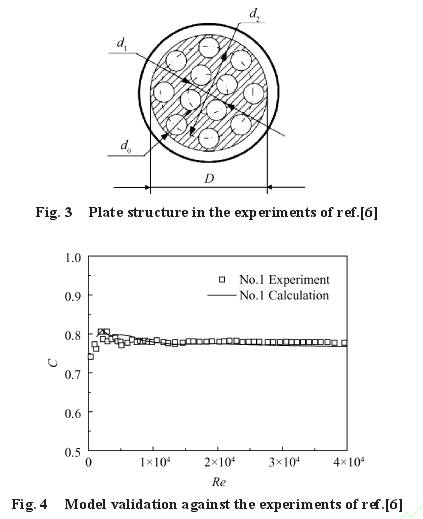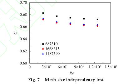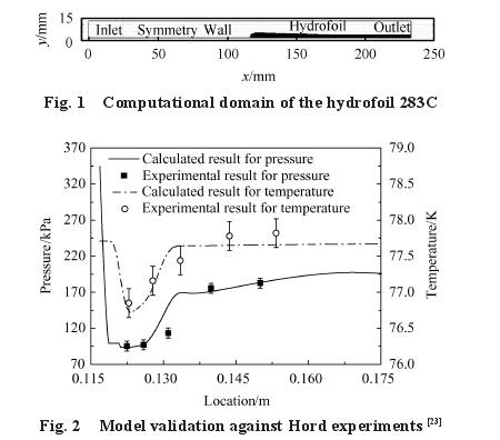 摘要:平(ping)衡型低溫流量(liàng)計 可用于低溫(wen)推進劑的加注(zhu)、分配、輸送等環(huán)節,其孔闆結構(gòu)特征是影響流(liú)量計性能的關(guan)鍵因素。爲了研(yán)究孔闆倒角對(dui)平衡型低溫流(liu)量計流出系數(shu)、壓力損失系數(shù)和穩定性的影(ying)響,建立了基于(yú)Mixture多相流模型、Schnerr-Sauer空(kong)化模型和Realizablek-ε湍流(liú)模型的CFD數值模(mo)型,并結合文獻(xian)中的水翼空化(huà)實驗和多孔闆(pan)流動實驗的結(jie)果驗證了模型(xing)的可靠性。模拟(nǐ)計算結果顯示(shì),開設前倒角會(huì)增大多孔闆的(de)流出系數,減小(xiao)壓力損失系數(shù),但會增大流量(liàng)計測量時的不(bu)穩定性;45°的前倒(dao)角使流出系數(shu)由0.674增大到0.907,适當(dang)開設前倒角可(ke)以有效提高流(liú)量計的工作性(xìng)能。而開設後倒(dǎo)角對流量計性(xìng)能的影響較小(xiǎo)。用于流體流量(liàng)的雙向測量時(shi),可對多孔闆的(de)前後端均開設(shè)45°的倒角。 1引言 孔(kong)闆流量計 因其(qi)結構簡單、可靠(kào)性高和流體适(shì)用性廣等優點(diǎn),目前已廣泛地(dì)應用于石油和(he)化工等領域。然(rán)而,當流體流經(jīng)孔闆時會發生(sheng)節流壓降,容易(yì)發生空化現象(xiàng),此外也會造成(cheng)較大的局部壓(ya)力損失,這會對(duì)流量計的性能(néng)和設備安全帶(dai)來影響。另一方(fang)面,空間技術的(de)快速發展對低(di)溫流體流量測(cè)量精度的要求(qiú)也越來越高[1]。低(dī)溫推進劑的加(jiā)注、分配、輸送等(deng)環節都離不開(kāi)流量的精度高(gao)測量。多孔闆可(kě)以平衡調整流(liú)場[2],流體流經多(duo)孔闆後受到的(de)擾動和壓力損(sun)失比标準孔闆(pan)小,因而在低溫(wēn)流體測量領域(yu)的應用潛力大(da)。 在過去的幾十(shi)年間,多孔闆的(de)研究受到大量(liàng)關注,主要集中(zhōng)于結構參數和(he)運行工況對其(qi)流出系數和壓(yā)力損失系數的(de)影。 可以發現,以(yi)前對多孔闆流(liu)量計的研究多(duō)集中于常溫流(liú)體,如空氣和水(shuǐ)等,對應用于航(hang)天推進技術領(lǐng)域的低溫流體(tǐ)等研究相對較(jiào)少。此外,低溫流(liu)體流經多孔闆(pǎn)後易發生空化(huà)現象,在研究多(duo)孔闆流量計适(shì)用于低溫流體(tǐ)的性能研究時(shi),需要建立并驗(yàn)證考慮低溫流(liu)體空化流動的(de)數值模型。同時(shi),對孔闆結構參(cān)數的研究多集(jí)中于孔闆直徑(jing)比、孔闆厚度、開(kai)孔直徑、孔分布(bu)方式等,很少涉(shè)及到孔闆倒角(jiao)。 拟以低溫流體(tǐ)液氮爲介質,采(cǎi)用數值方法研(yán)究孔闆倒角對(dui)平衡型流量計(ji)低溫流體流量(liang)測量性能的影(ying)響,計算模型将(jiāng)考慮低溫流體(tǐ)的空化效應。 2方(fāng)法 2.1數學模型及(ji)驗證 液氮流經(jīng)多孔闆後,因節(jiē)流壓降,在一定(dìng)工況下流場壓(yā)力會小于相應(yīng)溫度下流體的(de)飽和壓力,誘發(fā)空化,此時流體(ti)流動 爲氣液兩(liang)相流。将氣液兩(liang)相看成混合物(wù)單相,采用混合(hé)物多相流模型(xíng)求解連續性方(fang)程、動量方程和(hé)能量方程。基本(ben)控制 方程如下(xia) 式中下标m,l和g分(fen)别表示混合相(xiang)、液相和氣相;a爲(wei)體積分數;p,v,μ,t,p,T和h分(fèn)别爲密度、速度(du)、動力粘度、時間(jiān)、壓力、溫度和焓(han);keff爲有效導熱系(xì)數;SE爲體積熱源(yuan);?dr.;爲相i的漂移速(su)度。 Schnerr-Sauer空化模型已(yǐ)被用于低溫流(liú)體空化的數值(zhi)計算[19-20]。其具體表(biǎo)達式爲[21]分别表(biao)示氣泡生成、氣(qi)泡破裂和飽和(hé)蒸汽。 此外,采用(yòng)Realizablek-ε湍流模型進行(hang)湍流閉合,它滿(mǎn)足雷諾應力的(de)數學約束,與實(shi)際湍流過程一(yī)緻。與标準k-ε模型(xing)相比,改進了湍(tuan)流粘性的計算(suàn),并基于均方渦(wō)波動的輸送方(fāng)程建立了新的(de)ε方程。對涉及旋(xuán)轉、強逆壓梯度(dù)下的邊界層,分(fen)離和回流等流(liú)動,Realizablek-ε模型可得到(dào)較好的預測結(jié)果。湍動能k和湍(tuān)流擴散率ε的輸(shū)送方程爲 是因(yin)平均速度梯度(du)生成的湍動能(néng)。 采用Hord等[23]的液氮(dàn)水翼空化實驗(yàn)283C來驗證上述數(shù)學模型在模拟(nǐ)低溫流體空化(huà)流動時的可靠(kao)性。水翼結構和(he)計算域如圖1所(suǒ)示,且實驗中液(ye)氮的進口溫度(dù)爲77.71K,自由來流速(su)度爲14.5m/s,空化數爲(wei)1.8。模拟中采用速(su)度進口和壓力(li)出口,y=0處設爲對(dui)稱邊界條件,壁(bi)面設爲無滑移(yi)壁面。計算結果(guo)和實驗結果的(de)對比如圖2所示(shi)。水翼壁面壓力(li)和溫度的數值(zhí)及随 位置的變(biàn)化規律基本吻(wěn)合,考慮到實驗(yan)誤差及模拟對(duì)實際問題的簡(jian)化,可以認爲數(shu)值計算模型可(ke)以有效地用于(yu)模拟低溫流體(tǐ) 的空化流動。 此(cǐ)外,選取Huang等[26]的多(duō)孔闆流動實驗(yàn)結果,來驗證數(shù)值模型用于流(liu)體多孔闆流動(dong)的準确性。孔闆(pǎn)結構如圖3 所示(shi),采用了實驗中(zhōng)編号爲No.1的多孔(kǒng)闆,管路内徑D、開(kāi)孔直徑d0、内圈開(kai)孔圓心所在圓(yuan)的直徑d1和外圈(quān)開孔圓心所在(zài)圓的 直徑d2分别(bié)爲29mm,4mm,11mm和22.6mm,厚度爲3mm;内(nei)圈開有5個孔,外(wai)圈開有9個孔。實(shí)驗工質爲水,且(qie)實驗在标準大(dà)氣