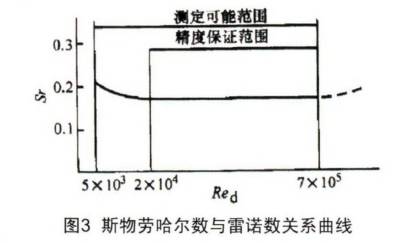 斯特羅哈爾數(shu)爲無量綱參數,它(ta)與漩渦發生體的(de)形狀及雷諾數有(you)關。圖3所示爲三角(jiǎo)柱漩渦發生體的(de)斯特勞哈爾數.與(yǔ)管道雷諾數的關(guan)系。