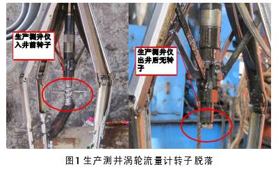 測井儀底部(bu)渦輪流量計(ji)在四上四下(xia)測井任務中(zhōng)轉速過快,地(dì)📱面直讀顯示(shi)該轉子的最(zuì)高轉速達到(dào)260rps,超過了轉子(zi)的安全🌈工作(zuo)轉速.上限200rps,同(tóng)時需長時間(jiān)🙇🏻滞留在産層(céng)位置進行流(liu)壓測試操作(zuò),因此直接原(yuán)因爲轉子在(zai)高溫高流速(su)的極限工作(zuo)環境下發生(sheng)♋脫落,影響了(le)測井數據的(de)錄取,如圖1所(suo)示。
