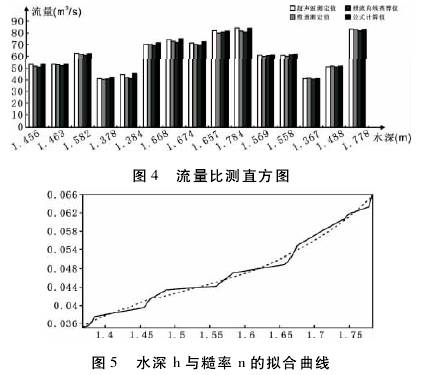參(can)考測得的水(shuǐ)位h和設定的(de)不同糙率常(cháng)數n,分别利用(yong)纜道流速儀(yí)、超聲流量計(ji)、洩流曲線查(cha)算以及公🆚式(shì)計算,對流量(liang)實施🏃♂️了多次(ci)比測。在滿足(zu)士5%允許誤🌏差(chà)情況🆚下,選用(yòng)統計解析方(fāng)法對數據實(shí)施篩選處🔴理(li),獲得了😘滿足(zú)實驗🐇解析的(de)樣本系列,具(ju)🚩體見表2和圖(tu)4所示。借助計(ji)算機對實🏃驗(yan)數據實施拟(nǐ)合計算,得📱到(dào)了水深h與糙(cāo)率常數n的拟(nǐ)合曲線,具體(ti)見圖5所示。