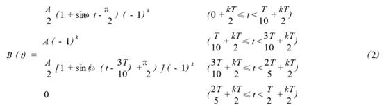 對當(dang)前矩形波(bo)勵磁方式(shi)改進後提(tí)出了一種(zhǒng)新型的💞三(san)✔️值正弦🔆矩(ju)形波勵磁(ci)方式,波形(xing)如圖2所示(shì),數學表達(dá)式如式(2)。