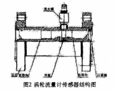 下圖爲渦輪流(liú)量計傳感器的(de)結構圖: