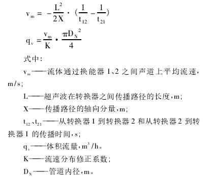時差法(fǎ)超聲波流量計:在(zài)逆流中傳輸所需(xu)時間比順流傳輸(shū)時間長,因此,隻要(yào)在相距一定距離(lí).處分别放❌置兩組(zǔ)超聲波😍發生器與(yǔ)接收器,同時向順(shun)逆流方向發射超(chao)聲波,接收器就可(kě)測出與流速.V。成正(zhèng)比的時差Ot,由時差(cha)便可求出流速和(he)流.n量q,見下式: