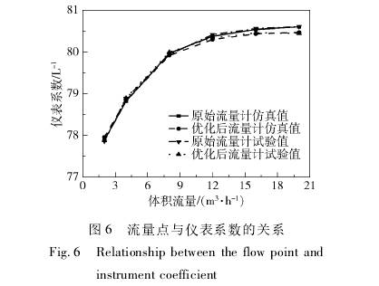 将(jiāng)原始流量(liang)計儀表系(xi)數與優化(hua)後的流量(liàng)計儀.表系(xì)數進行對(dui)比,結果如(rú)圖6所示。流(liú)量計儀表(biǎo)系數CFD仿真(zhēn)值與試驗(yan)值吻合,證(zhèng)明了CFD仿真(zhēn)的準确性(xìng)。對比原始(shi)渦輪流量(liang)計和優化(hua)後渦輪流(liú)量計儀表(biao)系數試驗(yan)值曲線得(de)出,優化後(hou)的流量計(ji)在不同流(liú)量處的儀(yi)表系數變(biàn)化情況較(jiao)原來更爲(wèi)平穩。經計(ji)算,儀表系(xi)數線性度(dù)誤差由原(yuan)來的1.71%下降(jiang)到了1.59%,顯著(zhe)提高了渦(wo)輪流量計(jì)的測量精(jīng)度。