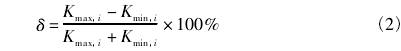 式中Kmin,i爲流(liú)量計在5個(gè)流量點處(chu)得到的儀(yí)表系數最(zui)大值;Kmin,i,爲流(liú)量計在5個(ge)流量點處(chù)得到的儀(yi)表系數最(zuì)小值。