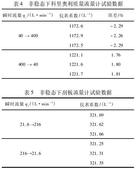 摘要:在實際應用(yong)中,燃油流量計 常(cháng)會工作于非穩定(dìng)流量狀态下,此時(shí)流量計的計🈲量💁性(xìng)能可⭐能會發生變(biàn)化。利用燃油動态(tai)流量标準裝置,對(duì)科裏奧利質量流(liu)量計和容積式刮(gua)闆流量計分别進(jìn)行非🔞穩态流量試(shi)驗,分析了非穩态(tai)流量📱環境對這兩(liǎng)種流量計測量結(jié)果的影響🐅,并給出(chū)了使用和校準建(jian)議。 0引言 目前,實驗(yan)室均是在穩态流(liu)量條件下,對 流量(liàng)計 進行檢定或校(xiao)準試驗,即通過流(liu)量标準裝置提供(gòng)穩定的☀️标💜準流量(liàng),将流量計的示值(zhí)與标準流量值㊙️進(jìn)行比較,計算誤差(chà),從而評價流量計(jì)的計量性能,例如(rú): 渦輪流量計 檢定(dìng)規程要求在特定(ding)流量點下進行試(shì)驗,并且要求“在檢(jian)定🤟過程中,每調整(zhěng)一個流量點,都應(ying)待壓力、溫度、流量(liang)穩定後方可進行(hang)檢定”山。然而實際(jì)工況中的流量往(wang)往是非穩态的,例(lì)如飛機在起飛、爬(pá)升、俯沖、巡航、加力(lì)、滑翔、降落等飛行(hang)狀态時,發動機的(de)🈲耗油速率、耗🏃♀️油量(liàng)均會發生急劇變(biàn)化,燃油管道内㊙️會(hui)産生流場變🏒化和(he)壓力變化,因此有(you)必要對流量計非(fēi)穩态下的計量性(xìng)能進行研究。 近年(nian)來,國内學者針對(duì)渦輪流量計和科(ke)裏奧利質量流量(liang)💋進行了動态響應(yīng)的理論分析和仿(pang)真口2-3,但相關試驗(yàn)相對較少。利用👌燃(ran)油動态流量标準(zhun)裝置,對科裏奧利(lì)質量流量計和容(róng)積式刮闆流量計(ji)分别進行非穩态(tài)流量🔞試驗。 1流量計(ji)原理及數學模型(xing) 1.1科裏奧利質量流(liu)量計 科裏奧利質(zhi)量流量計基于科(ke)裏奧利力效應,直(zhí)接.測量流體的質(zhi)量流量,簡稱科氏(shi)質量流量計(CoriolisMassFlowmeter,CMF)。該流(liu)量計😍内部設計有(you)振動的測量管,流(liú)體在測量管中的(de)流動相當于直線(xian)運動,而測量管的(de)振動會産生一個(gè)角速👌度,由于振動(dòng)是受到外加電磁(cí)場驅動的,有着固(gu)定的👨❤️👨頻率,因此,流(liú)🌈體在管道中受到(dao)的科裏奧利力僅(jin)與其💚質量和運動(dong)速度有關,而質量(liang)和運動速度及流(liú)速的乘積就🔴是需(xū)要測⭐量的質量流(liu)量⚽,因此通過測量(liàng)流體在管道中受(shou)到的科裏奧利力(li),便可以測量其質(zhì)量流量。其數學模(mo)型爲 當流體流過(guo)振動的測量管時(shi),在測量管中産生(shēng)的科裏奧⭐利力會(hui)引起振動管發生(shēng)微小變形,從而産(chan)生進🐆口和出口的(de)相位差,如圖1所示(shì)。當流量爲零時,即(jí)流體停滞不流動(dòng)時,入口A和出口B處(chu)的相位差爲零。當(dang)有流體流過時,測(cè)量管入口A處振動(dòng)減速,出口B處振動(dòng)加速,當質量流量(liàng)增加時,相位差也(ye)增加,通過入口和(hé)出口的電磁式相(xiang)位傳感器,即可測(ce)量管子的振動相(xiang)位。科🈲裏奧利質量(liàng)流量計的K系數就(jiù)是質量流量與相(xiàng)位差😍的特征數。 1.2容(róng)積式流量計 容積(jī)流量計是一種利(lì)用定容積器件連(lián)續測量流體‼️總量(liàng)的儀表,亦稱爲正(zheng)排量流量計(PositiveDisplace-mentFlowmeter,PDF)[4]。選用(yong)的容積👈式刮闆流(liú)量計🈲的結📧構如圖(tú)2所示,其結構由柱(zhu)形計量腔體、一個(gè)阻塞轉子📱(Blockingrotor)和兩個(gè)移動轉子(Displace-mentrotors)構成。在(zai)轉子轉動的一個(ge)周期内的任何位(wèi)置,計量腔體、阻塞(sāi)🐅轉子以及至少一(yi)個位移🏃♂️轉子之間(jiān)始終保持着連續(xù)的密封。 當流體通(tong)過流量計時,會推(tui)動計量腔内部的(de)轉子轉動☂️,轉動中(zhōng)的轉子将流體分(fen)割,流體的流動與(yu)轉子的轉動同時(shi)進行🔴。當流❌體進入(rù)計量腔時,流體不(bu)斷的被分割和測(ce)量,與此同時前部(bu)的📧流體通過流量(liàng)計并進入下遊管(guan)道。由于計😘量腔的(de)容積是已知的,且(qiě)阻塞轉子的每一(yī)次旋轉中通過流(liu)量計的體💁積量都(dou)是相🐪同的,通過測(ce)量轉🐉子的轉數,即(ji)可得到通過流量(liang)計的累積流量。容(rong)積式流量計的理(lǐ)論公式爲 Q=Kn (2) 式中:Q爲(wei)流體總量;K爲儀表(biao)系數;n爲分割流體(ti)機構的轉數。 2非穩(wěn)态流量源 本次試(shì)驗所使用的标準(zhǔn)裝置爲燃油動态(tài)流量标準裝置,該(gāi)裝置采用主動式(shi)活塞體積管作爲(wèi)标準器,其擴展測(cè)量不确定度🔅U=0.05%(k=2),原理(lǐ)如圖4所示。 燃油動(dòng)态流量标準裝置(zhi)的工作原理爲:工(gong)作過程.中電機旋(xuan)轉💯,驅動滾珠絲杠(gàng)帶動标準體積管(guǎn)活塞左行,排出液(ye)體流經🧑🏾🤝🧑🏼控制閥門(mén)及被檢流量計後(hòu)經過過濾🚶器回到(dao)儲油箱;同時,儲油(yóu)箱裏的油經過下(xia)遊管段進入标準(zhun)體積管。通過✌️設置(zhi)電機👨❤️👨的轉速實現(xian)非穩态流量,通過(guo)采集🈚光栅值來确(que)定活塞的移動位(wei)置,由于截面積已(yǐ)知,可準⁉️确計算得(de)到标準流量值。. 3試(shi)驗結果分析 選用(yong)直管式科裏奧利(li)質量流量計和容(róng)積式刮闆流㊙️量計(jì)作爲試驗對象,分(fen)别進行穩态流量(liang)試驗和非穩态流(liu)量試驗。試驗