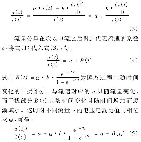 針對瞬态(tai)測量,通過(guo)對信号電(diàn)壓的分析(xi),确定了信(xin)号電壓和(he)勵磁電流(liú)的比值與(yǔ)流量的線(xiàn)性關系,提(ti)出了基于(yu)電壓電流(liu)比值的處(chu)理方法。瞬(shùn)态測量勵(li)磁時間㊙️短(duan),勵磁電流(liú)及👨❤️👨其感應(yīng)産生的磁(cí)場均未進(jin)入穩态。在(zai)勵磁電流(liu)的上升過(guo)程中,微分(fèn)幹擾隻随(suí)👣時間變化(huà),而流量分(fen)量受到勵(lì)磁電流的(de)影響,其大(da)小不僅與(yu)流速有關(guān),還随時間(jian)變化。爲了(le)消除勵磁(ci)電流對流(liú)量分量的(de)影響🏃🏻♂️,同時(shi)減小電流(liu)波動帶來(lái)的磁場波(bo)動對信号(hào)産生的影(yǐng)響,将信✉️号(hào)電壓比上(shang)勵磁電流(liu),即式(2)比上(shàng)式💯(1),得到: