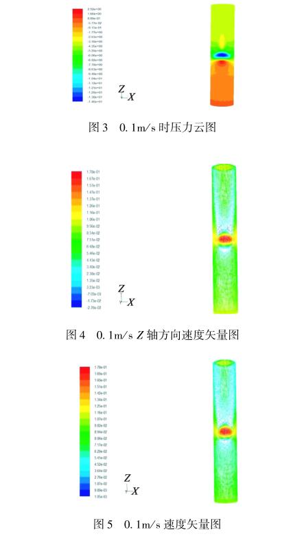 在分析(xī)中以DN80口徑的(de)管道爲模型(xing),流場動力學(xue)計算方式爲(wèi)⭐:速度人口,充(chōng)分發展流爲(wèi)出口,分别讨(tao)論計算流速(su)爲0.1m/s、10m/s時流,場流(liú)速、壓力等參(cān)數的變化趨(qu)勢以及不同(tong)參數對流場(chang)特性的影響(xiǎng)。圖3~圖10的分析(xi)說明在下面(mian)分析中體現(xiàn)。
