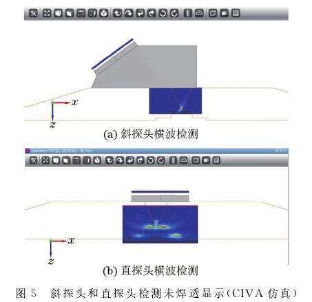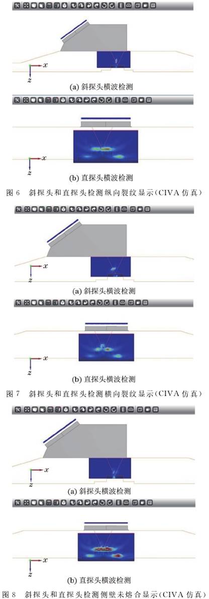 流量計(jì)殼體焊縫(féng)的缺陷主(zhu)要位于焊(hàn)縫根部,缺(quē)陷形🌈式🈲一(yi)般爲未焊(han)透、側壁未(wèi)熔合、裂紋(wen)、夾渣和氣(qì)孔等畢,采(cai)用CIVA仿真🌐軟(ruǎn)件對流量(liang)計殼體焊(hàn)縫根部中(zhōng)的常見缺(que)陷進行全(quán)聚焦相控(kòng)陣超聲檢(jian)測,結果如(rú)圖5~9所示