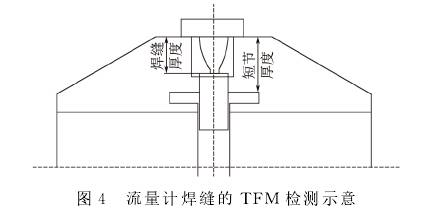 TFM方法(fǎ)以全矩陣(zhen)數據爲基(ji)礎,多陣元(yuan)相控陣探(tàn)頭依次🎯激(jī)📐勵每🚩一個(gè)晶片,激發(fa)球形波入(rù)射至材料(liao)中,每一次(cì)發射後,材(cái)💁料中不連(lián)🈲續的反射(she)回波将同(tong)時被所有(yǒu)晶片接收(shōu),将檢測信(xin)号通過後(hòu)處㊙️理聚焦(jiāo)于檢測區(qu)域中的每(mei)一個點上(shàng),利用檢測(ce)區域中每(měi)一個點的(de)幅值信息(xi)重構出二(èr)🤩維圖像,可(ke)獲得高分(fèn)辨率成像(xiàng).效果,實現(xian)缺陷的準(zhun)确定位及(ji)定量分析(xi)。流量計的(de)焊縫TFM檢測(cè)示意如圖(tu)💜4所示,其能(néng)一次完成(chéng)焊縫區域(yù)的厚度測(ce)量和缺陷(xian)檢測341