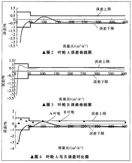 (6)在(zài)小流量(liàng)點區域(yu),不管是(shì)葉輪A還(hai)是葉輪(lún)B,計量誤(wu)差仍然(ran)很大。