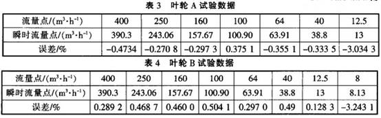 選用葉(ye)輪A時的(de)試驗數(shù)據見表(biao)3。
