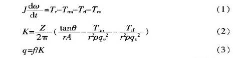 式(shi)中:J爲渦(wō)輪的轉(zhuǎn)動慣量(liàng);w爲渦輪(lun)葉輪的(de)旋轉角(jiǎo)速度🛀;7,爲(wèi)流體對(dui)葉片産(chan)生的推(tui)動力矩(jǔ);Tm爲渦輪(lún)軸與軸(zhou)承之間(jiān)摩擦産(chan)🌂生的機(ji)械❌摩擦(ca)阻力矩(ju);Ts爲流體(ti)通過渦(wō)輪時産(chan)生的♉流(liú)動阻💚力(li)矩;Tm爲電(diàn)磁轉換(huàn)器對渦(wō)輪産生(sheng)的電磁(ci)阻力矩(ju);Z爲渦輪(lún)葉片數(shù);θ爲葉片(piàn)傾斜角(jiao);r爲葉片(piàn)的平均(jun1)半徑;A爲(wei)流通截(jie)面積;p爲(wèi)流體的(de)密度;f爲(wèi)信号脈(mo)沖頻率(lǜ);q爲體積(jī)流量;K爲(wei)儀表系(xì)數;q。爲✌️瞬(shùn)時體積(ji)流量。