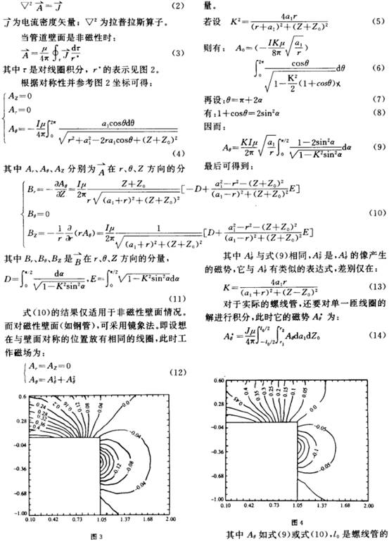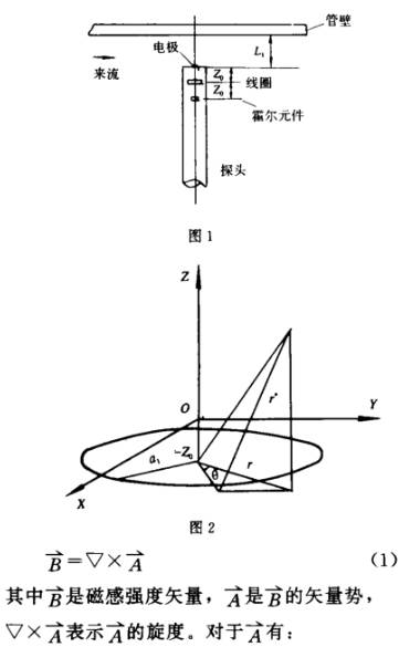 圖1中(zhong),插入式(shì)電磁流(liú)量計探(tan)頭的端(duān)部裝有(you)一對電(dian)極,内🌈部(bu)裝㊙️有一(yi)勵磁線(xian)圈,在它(ta)的周圍(wei)産生工(gōng)作磁場(chang)。爲🏒研究(jiū)磁場的(de)詳細分(fèn)布狀況(kuàng),先考慮(lü)單匝線(xiàn)圖。設其(qí)半徑爲(wèi)α1,裝在離(li)端部Z。處(chu),流過的(de)電流爲(wèi)I,流體中(zhong)的磁介(jie)質♈常數(shu)爲μ。采用(yong)矢量勢(shì)的表示(shì)法有: