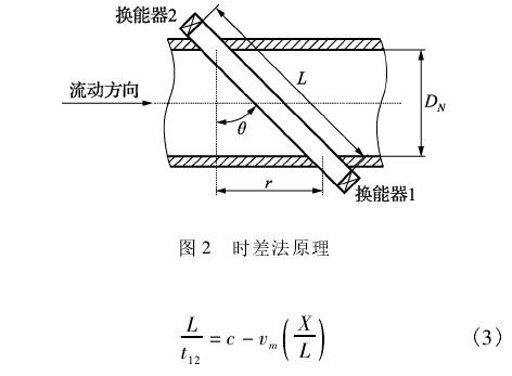時差法原理(li)如圖2所示,超聲(shēng)波逆流從換能(néng)器1送到換能☎️器(qi)2的傳播速度c被(bèi)流體流速?m所減(jiǎn)慢,爲