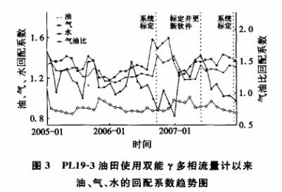 (2)定期标定(dìng)。随着時間(jiān)的推移,油(you)田産出液(ye)的液體組(zǔ)分及其含(hán)量會發生(sheng)變化,同時(shi)流量計差(cha)壓.表的零(ling)點經過一(yi).段時間後(hòu)也會發生(shēng)漂移,所以(yi)要定期對(dui)流量計進(jìn)行标定。從(cong)油田計量(liàng)結果的回(hui)配系數(圖(tu)3)可以看出(chu),對流量計(jì)進行标定(ding)後其油氣(qi)水的誤差(cha)有明顯的(de)下降趨勢(shi)。經過實踐(jian),建議最好(hǎo)是3個月标(biāo)定1次,至少(shǎo)要半年标(biao)定1次。對新(xīn)投産的井(jǐng)或測量值(zhí)出現明顯(xian)偏離的井(jǐng),一定要進(jìn)行重新标(biao)定。