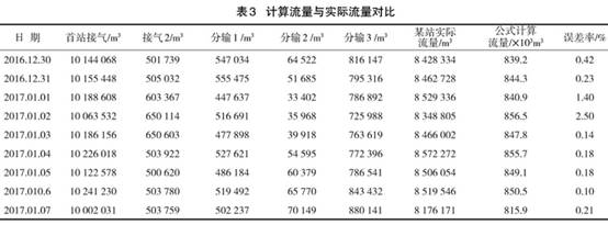 爲了(le)驗證提(tí)出方法(fa)的可靠(kào)性,查找(zhao)該站壓(yā)縮機2025年(nian)12月份到(dào)2025年12月份(fèn)的運行(hang)數據。在(zai)此期間(jiān),西門子(zi)壓縮機(jī)及📱相關(guan)輔助設(shè)備運行(háng)穩定,且(qiě)工況點(diǎn)易于确(què)定。場站(zhan)的實際(ji)流🏃♂️量通(tōng)過接氣(qi)的總流(liú)量減去(qu)各分輸(shu)站的支(zhī)路流量(liàng)所得5]。将(jiang)計算所(suǒ)🏃🏻得流量(liàng)與實際(ji)流量進(jìn)行對比(bǐ)見表3。
