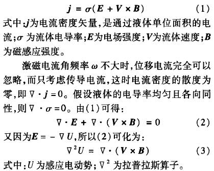 當導電性(xing)液體在磁場中作(zuo)切割磁力線運動(dòng)時,液體中有感應(ying)電流産生。根據歐(ōu)姆定律有: