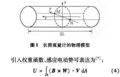 式中:A爲測(ce)量管容積,W爲權重(zhòng)函數,W=▽G,G爲格林函數(shu)。W是三維空間函數(shù),Wx、Wy、Ws分别爲W在坐标軸(zhóu)x、y、z方向,上分量,對長(zhǎng)簡流量計隻考慮(lü)y方向上分量Wy。假設(she)磁場方向平行于(yu)x軸,流速平行于z軸(zhou),則B=Bx,V=Vz。由以上條件,可(kě)得:
