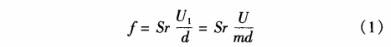 式中:U1爲(wei)旋渦發生(sheng)體兩側平(píng)均流速;U爲(wèi)被測介質(zhì)來流的平(píng)均流速;Sr爲(wèi)斯特勞哈(ha)爾數,對一(yi)定形狀的(de)旋渦發生(sheng)體在一⁉️定(dìng)雷諾數範(fan)圍内爲常(cháng)數;m爲旋渦(wō)發生體兩(liang)側弓形面(mian)積與管道(dao)橫截面面(mian)積之比。
