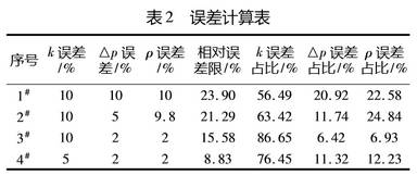 同理(li)可以進行(háng)系數k、差壓(ya)△p、密度ρ誤差(cha)均爲10%時的(de)誤差計算(suàn)🛀🏻;系數k誤差(cha)10%、密度ρ誤差(chà)2%時的誤差(chà)計算;系數(shu)k誤差5%、密度(du)🐅ρ誤2%時的誤(wu)差計算結(jie)果見表2。