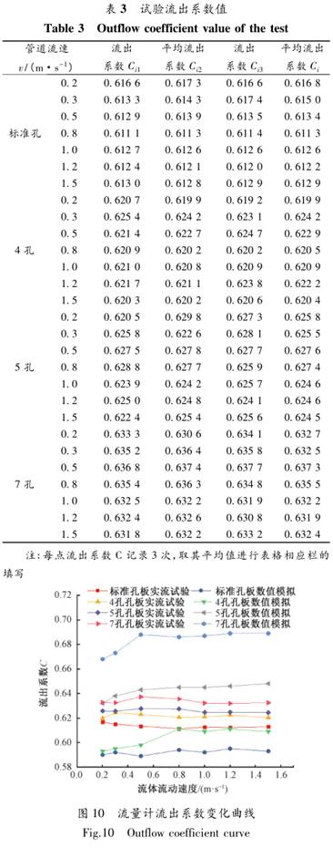 結合實驗數據(jù)和式(3)得不同開(kai)口數量流量計(ji)的流出系數,如(ru)表3所示,爲了與(yǔ)數值模拟結果(guǒ)進行直觀對比(bi),将不♈同開口數(shù)量流量計的流(liu)出系數繪制成(cheng)曲線,如圖10所示(shi)。