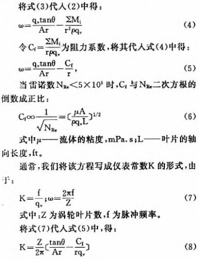 由式(5)和式(shì)(6)可見:當流體(tǐ)的粘度增大(dà)時,渦輪的轉(zhuan)動✍️角速🔴度變(bian)🈲小;當流體密(mi)度變大時,渦(wo)輪的轉動角(jiǎo)速度也随之(zhī)增大.在流體(tǐ)速度較小(相(xiang)當于層流狀(zhuang)态)時,渦輪的(de)頻率響應非(fei)線性,且受流(liú)體性質變化(huà)彬響較大;當(dāng)🐇流體速度較(jiao)高(相當于湍(tuān)流狀态)時,式(shi)變🍓小,渦輪響(xiang)應👣近似線性(xing),儀🧑🏽🤝🧑🏻器常數K基(ji)本上不受流(liú)體粘度變化(huà)影響。