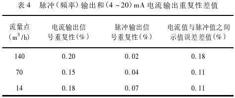 從(cóng)表4得出,此次(cì)試驗(4~20)mA電流輸(shu)出重複性大(da)于脈沖(頻率(lü))輸出重複性(xing),重複性普遍(bian)偏大0.10%以上。