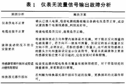 (1)儀(yi)表無流量信号輸(shū)出,原因及解決方(fang)案如表。1所示