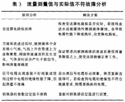 (3)流量測量值與實(shí)際值不符,原因及(jí)解決方案如表❓3所(suǒ)示,